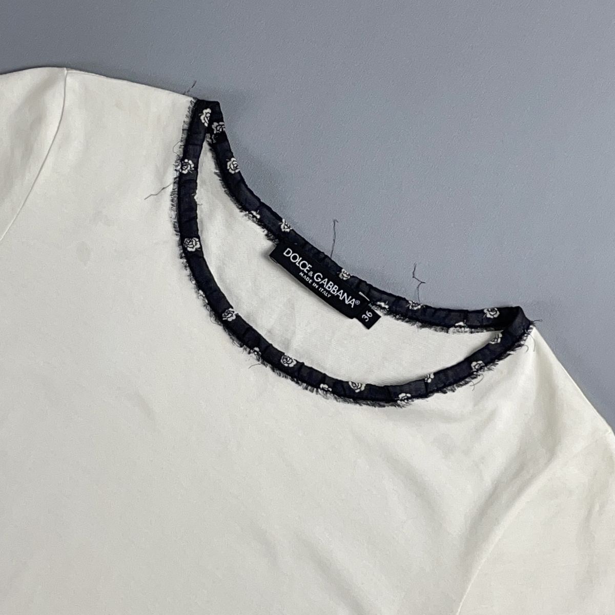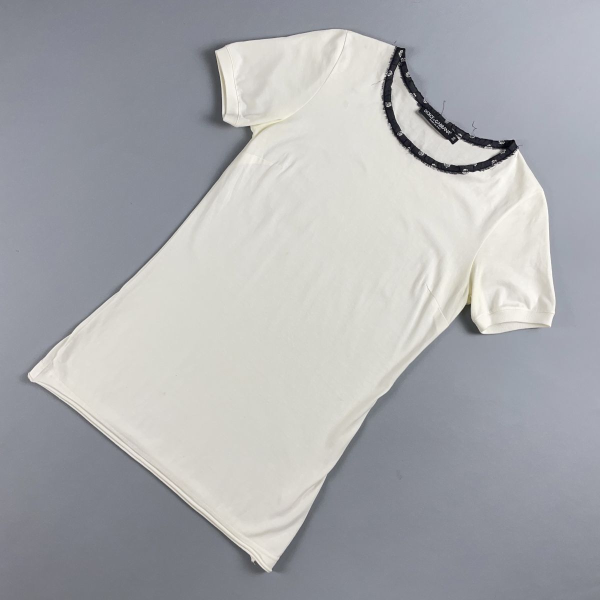 DOLCE&GABBANA ドルチェ&ガッバーナ 襟レース 半袖Tシャツ カットソー トップス レディース 白 ホワイト サイズ36*TC223