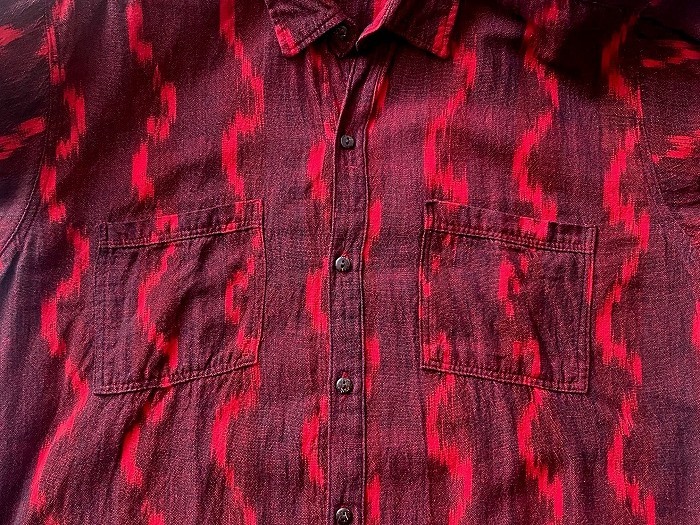 「Del Sol (デルソル)」× 「JOURNAL STANDARD (ジャーナルスタンダード) 」の 別注 GUATEMALA ZIGZAG S/S SHIRT グアテマラ ジグザグ 半袖シャツ RED L 中南米 民族 チマヨ リゾート ストリート カジュアル 総柄 Work ワーク Surf 古着 HECHO A MANO ハンドメイド 手染め Surf です。