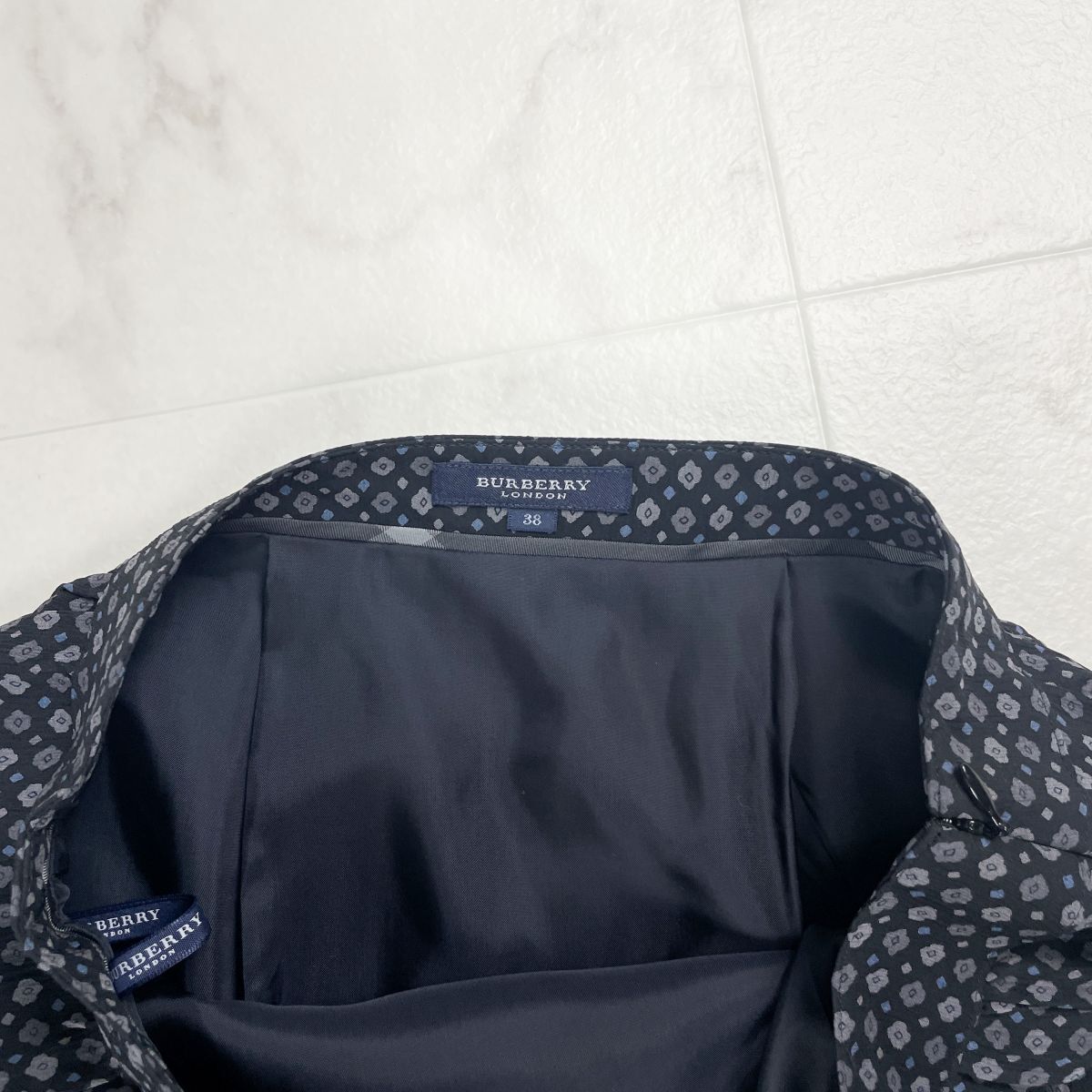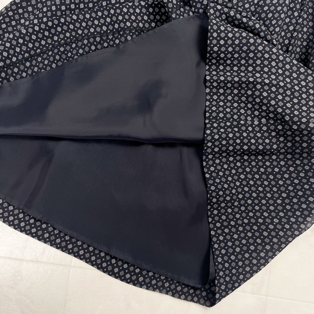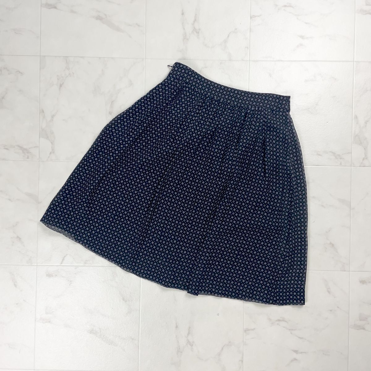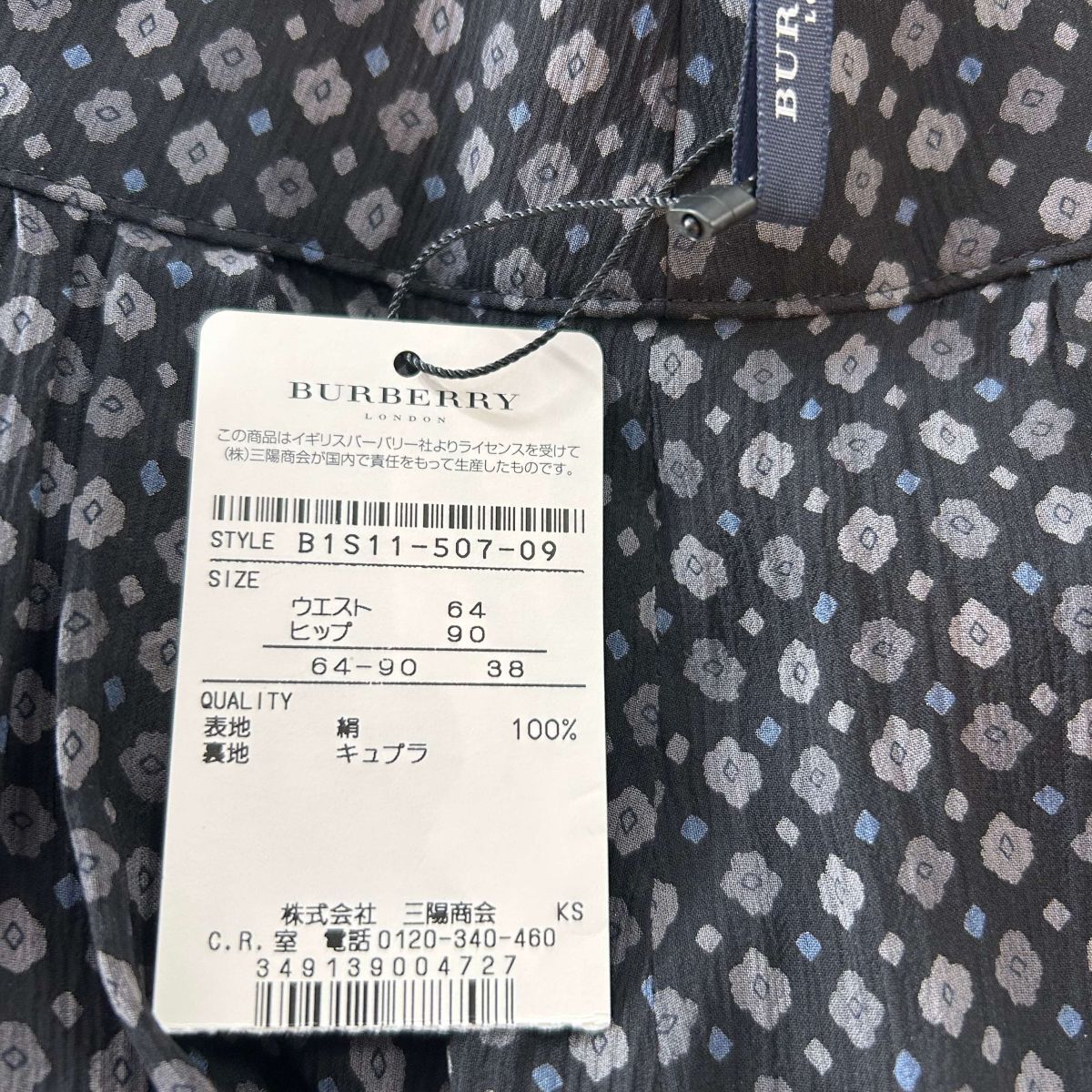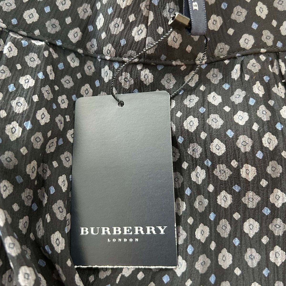 新品未使用 BURBERRY バーバリー シルク100% 小花柄シフォンフレアスカート ミモレ丈 裏地付き ブラック 黒 サイズ38*FD761