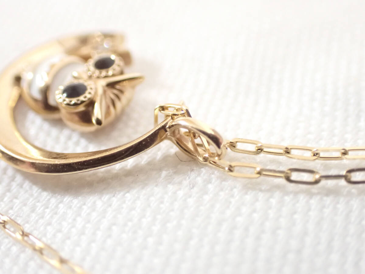 | コメント | 素材はK10YGを使用したネックレスでございます。トップにはフクロウモチーフのデザインです。ゴールドに輝きつつ、フクロウの目のストーンがかわいらしさを演出しております。商品の状態は細かなスレはございますが、きれいな状態を保っております。本商品には付属品はございませんが、緩衝材を巻いて丁寧に梱包し発送させていただきます。注文確定後は1~2日以内に発送いたします。ぜひ、購入のご検討をよろしくお願いいたします。 | |