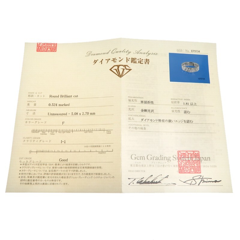 | 品名 | 0.524ct ダイヤモンド リング・指輪 Pt900プラチナ 12.5号 |