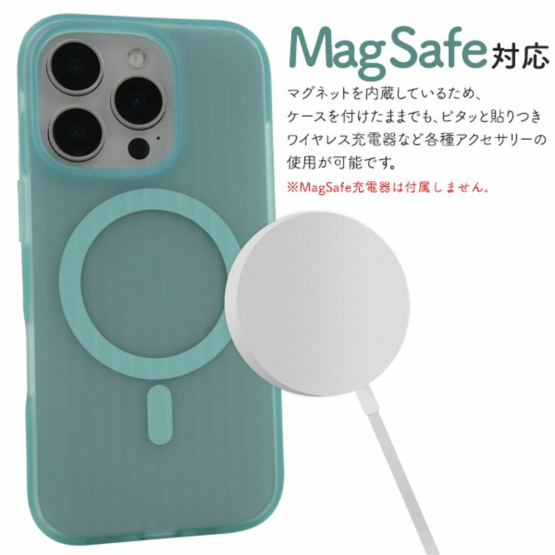 MagSafe対応で、マグネットを内蔵することでケースを付けたままでも、