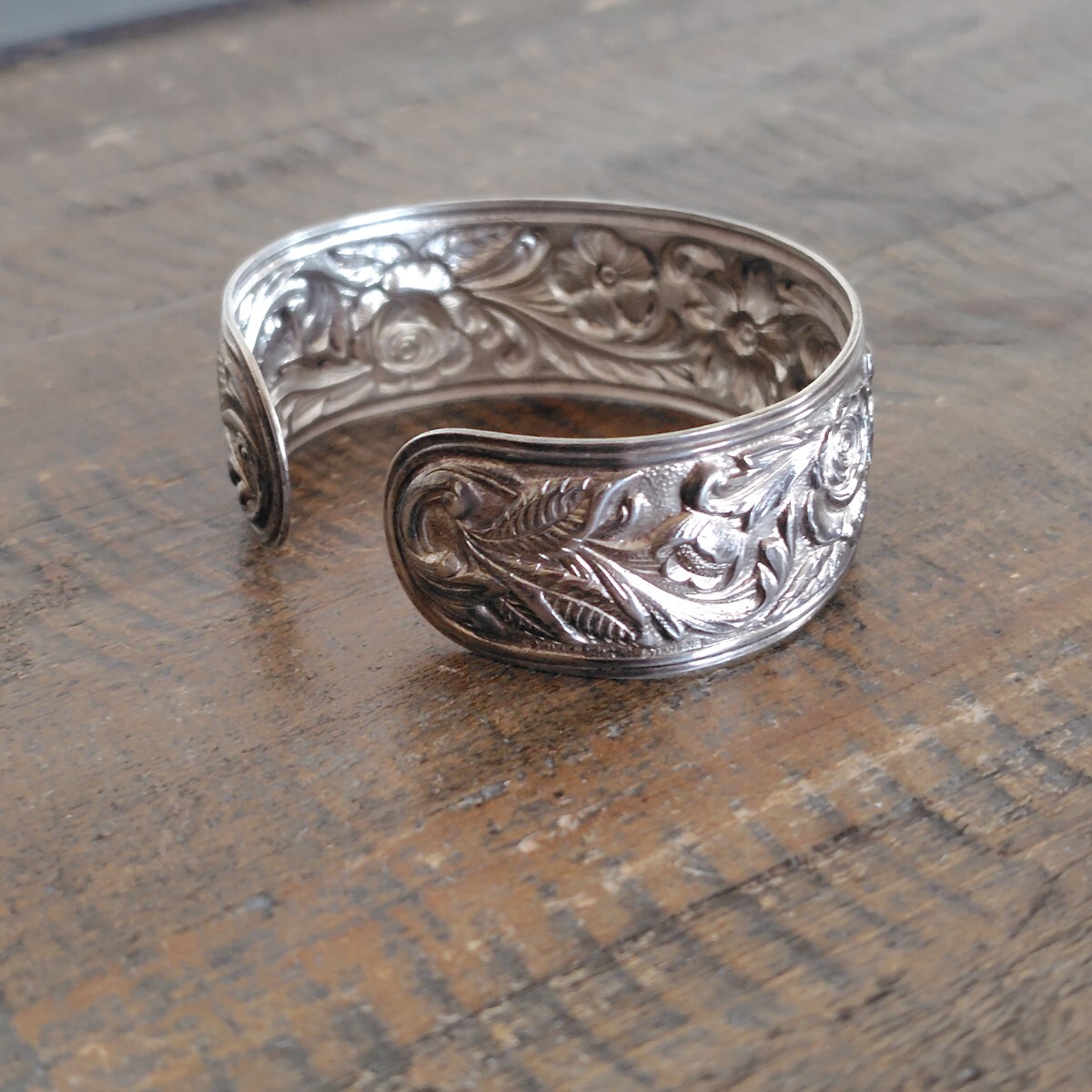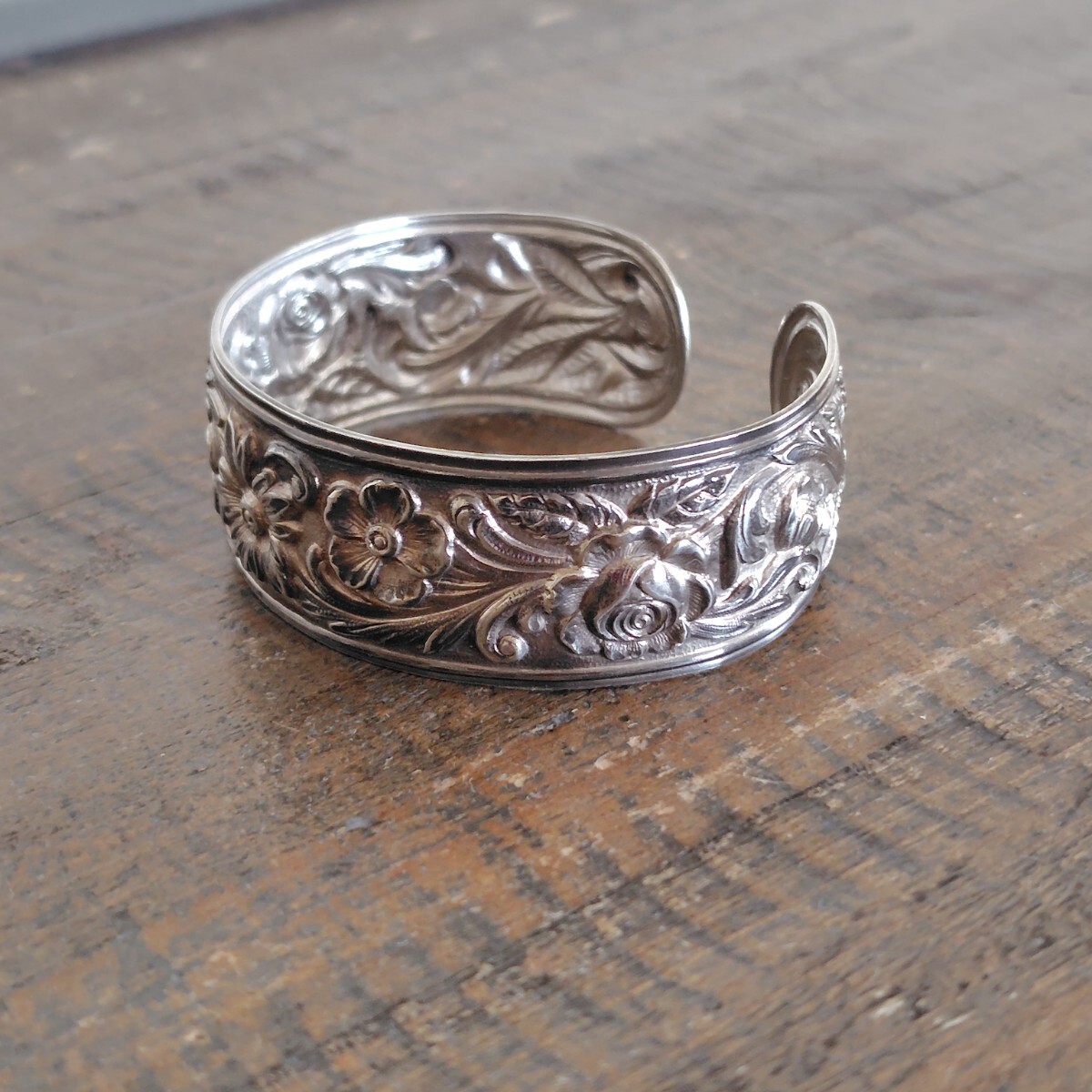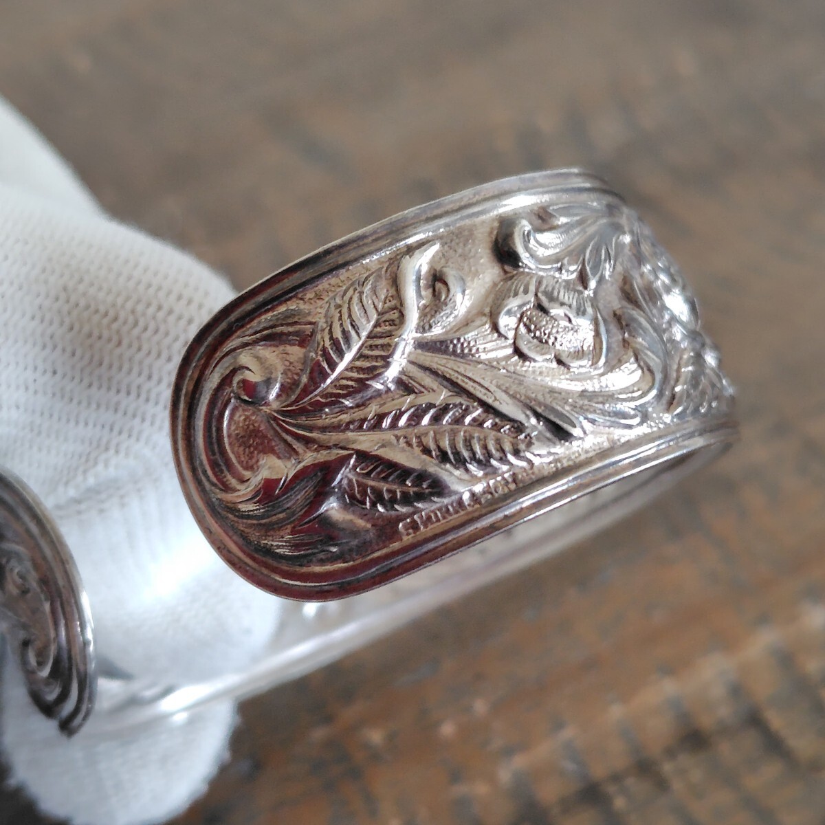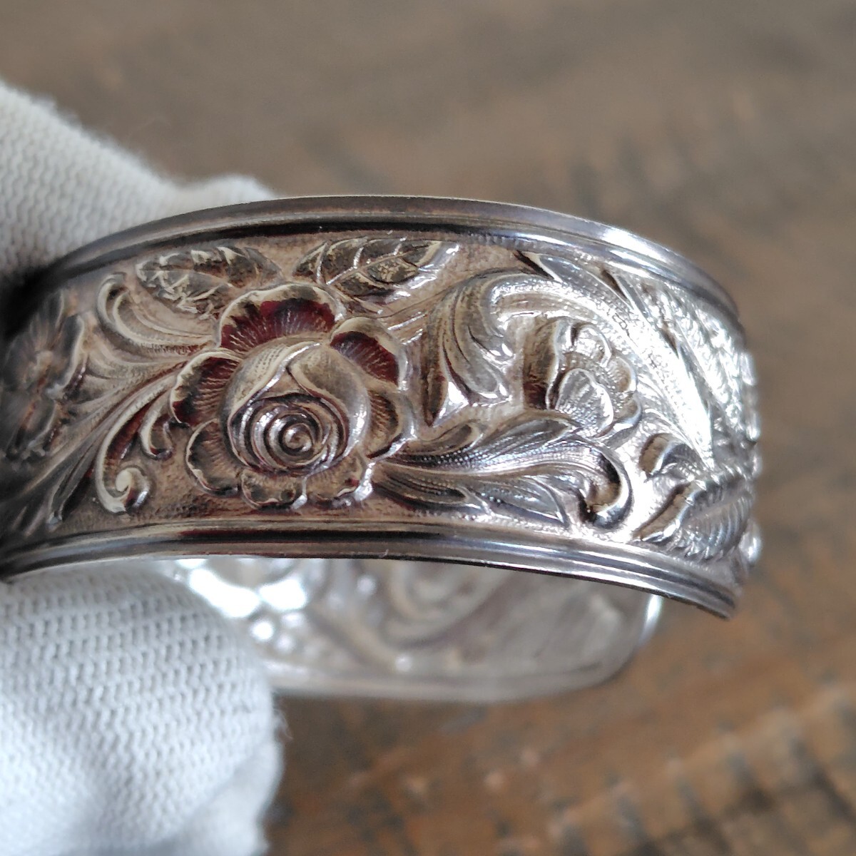 ヴィンテージ S Kirk & Son シルバー カフ バングル ブレスレット リポウズ フラワー