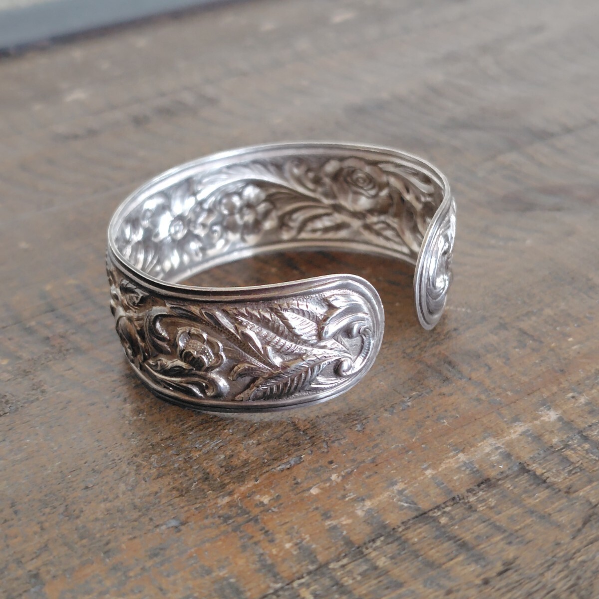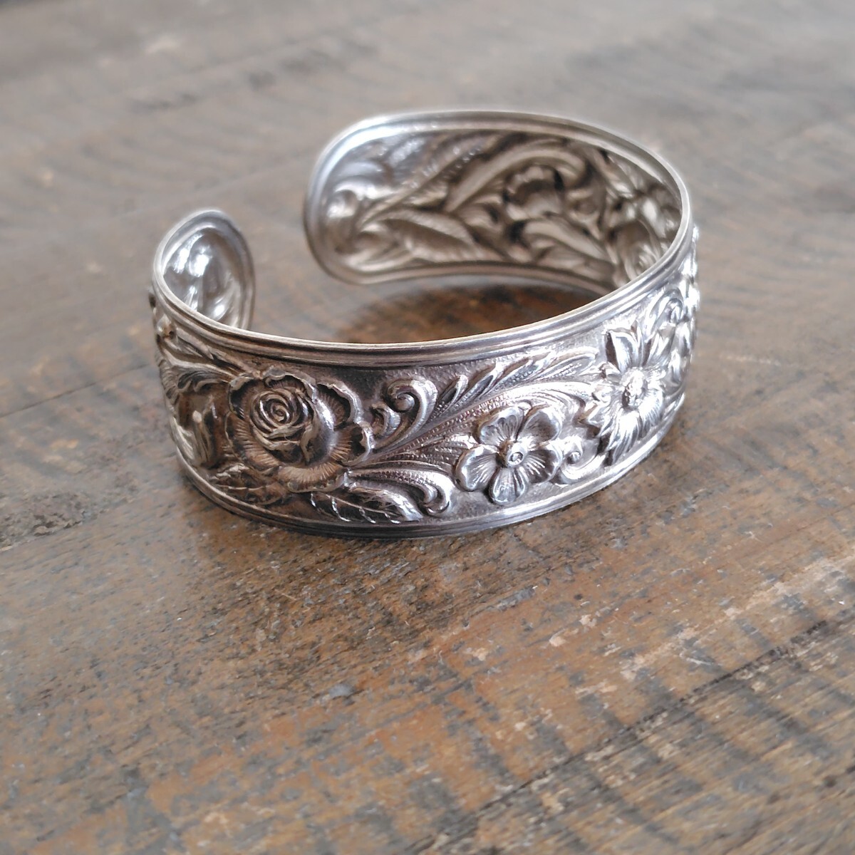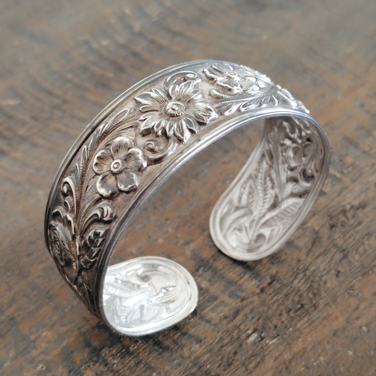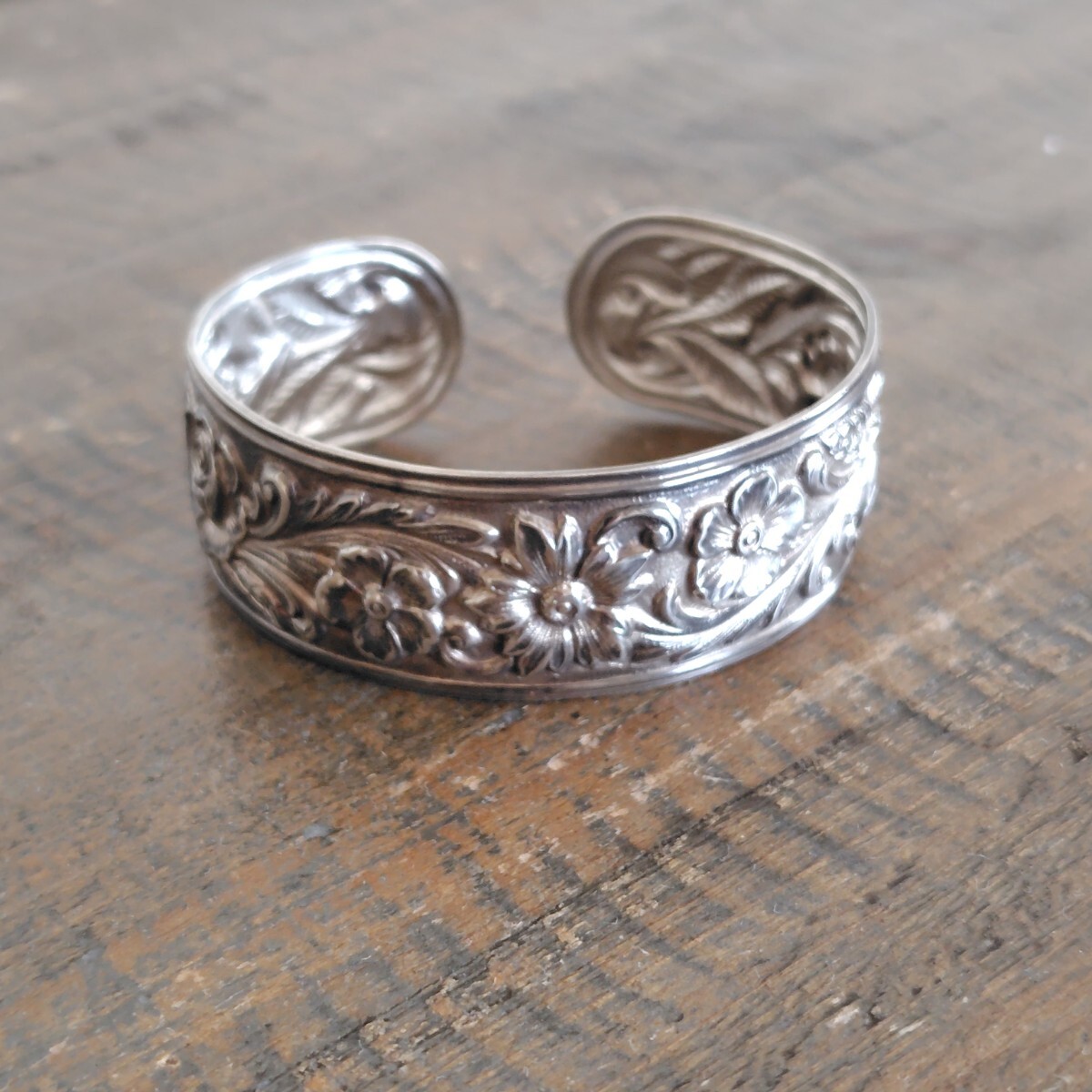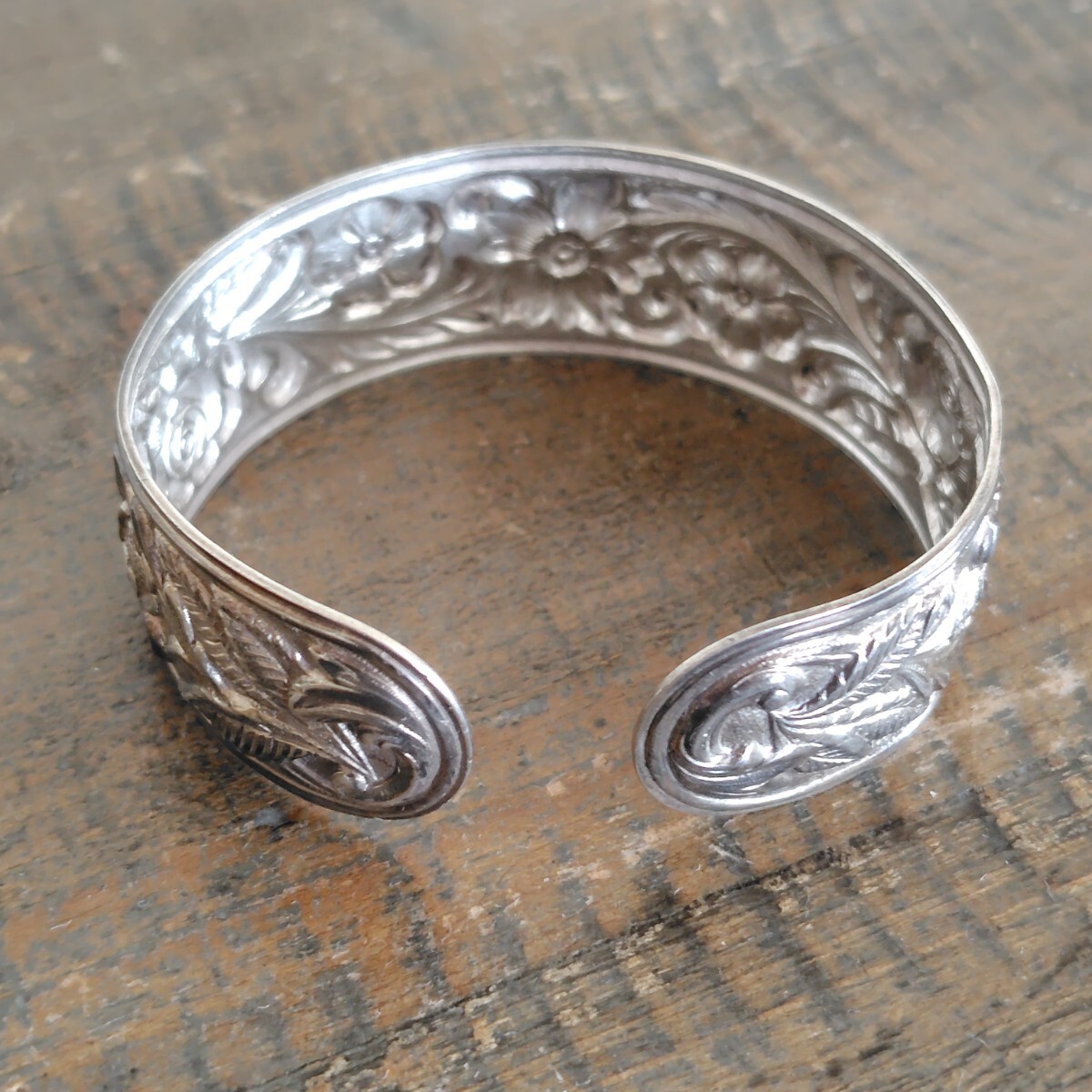 ヴィンテージ S Kirk & Son シルバー カフ バングル ブレスレット リポウズ フラワー