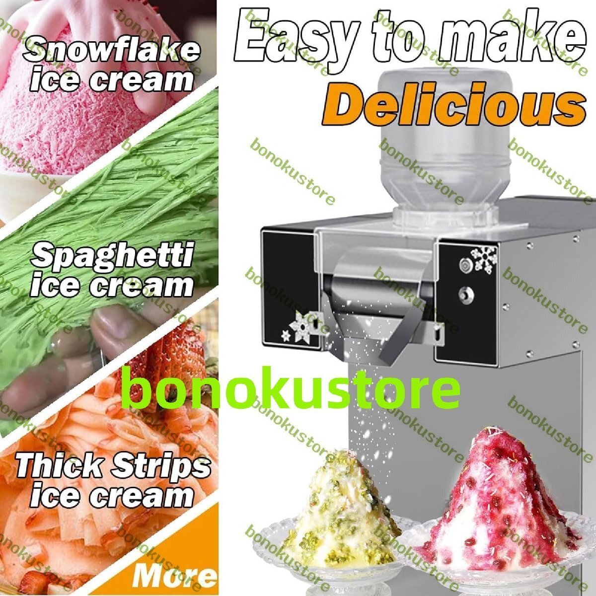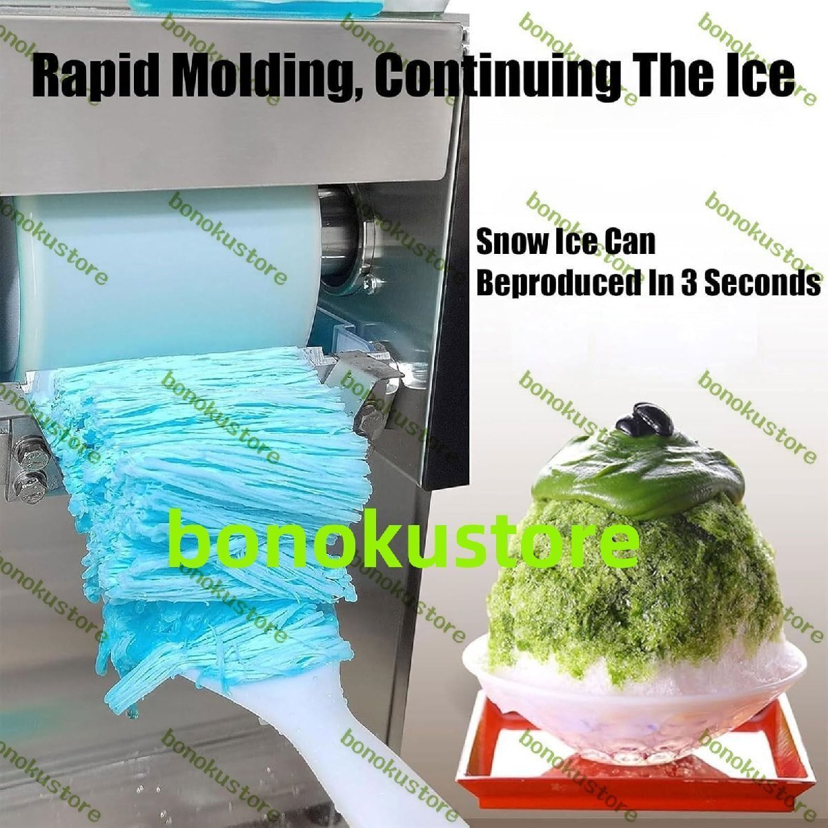 200kg/24時間電動スノーコーンシェーバー 1200W業務用スノーフレーク製氷機(材料バレル2個と受箱付き) 9段階速度調節可能