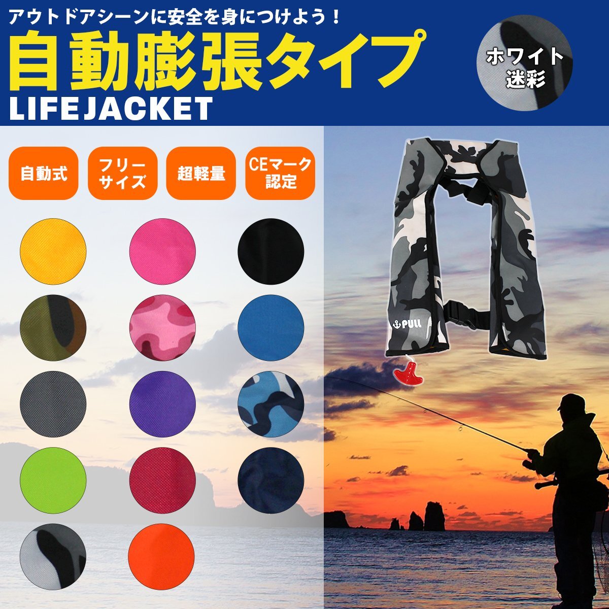 大人気!オリジナルデザイン! ライフジャケット 自動膨張式 肩掛け ベストタイプ 迷彩ホワイト ※男女兼用! フリーサイズ 釣り 船 ボート