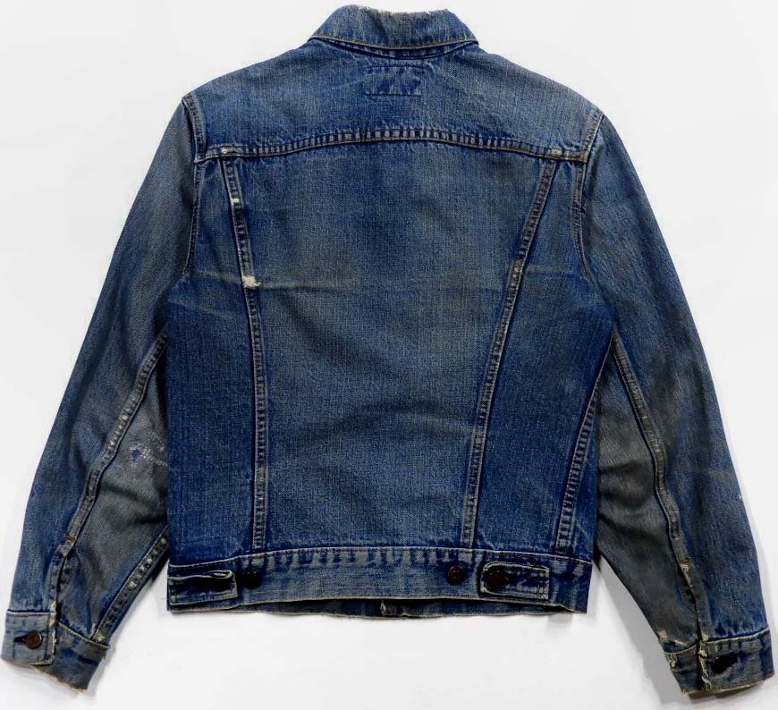 60'sの70505ビッグEです。復刻、レプリカではありません。『ディテール紹介』ボタン裏の刻印点々、赤タブビッグE。『状態』リペア=襟、袖。その他=スレ、キズなどUSED感があります。『色落ち、特徴など』色落ちは抜群で、ビッグE特有の非常に深みのあるインディゴで、全体に綺麗な縦落ちが見られます。ビッグEらしいスペシャルな風合いで、上位ヴィンテージにも引けを取らないと思います。