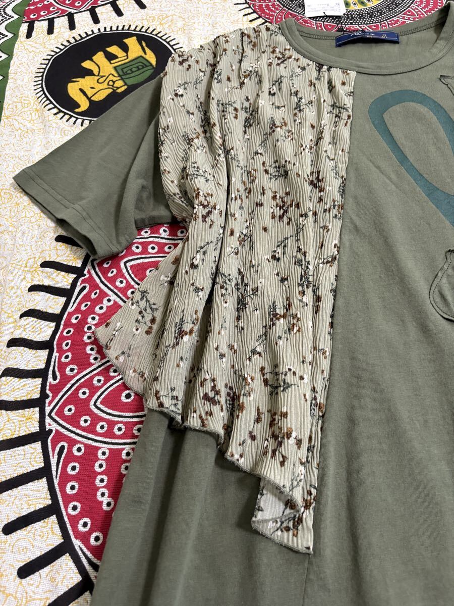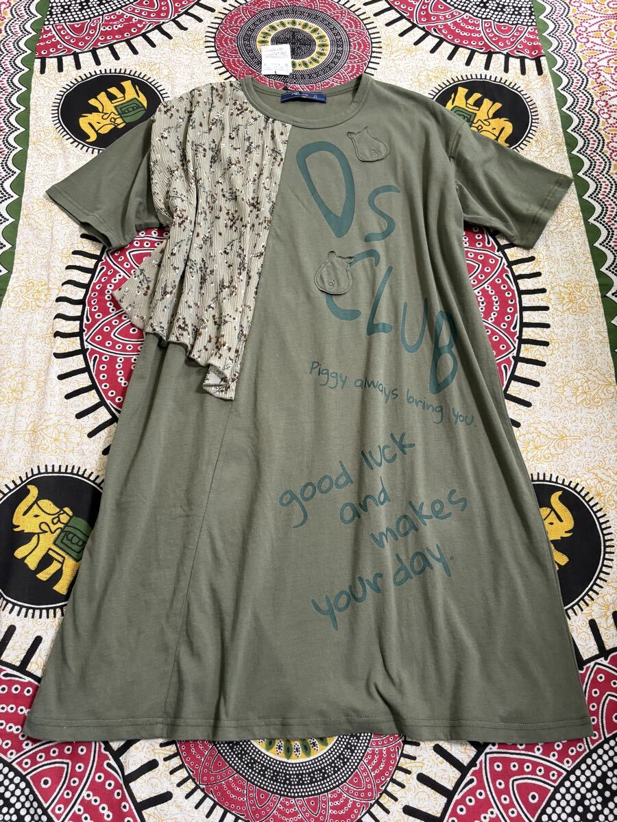 実寸は、平置き状態で、身幅(左右の脇下の幅)60cm、身丈(肩の一番高いところから裾まで)101cmです。