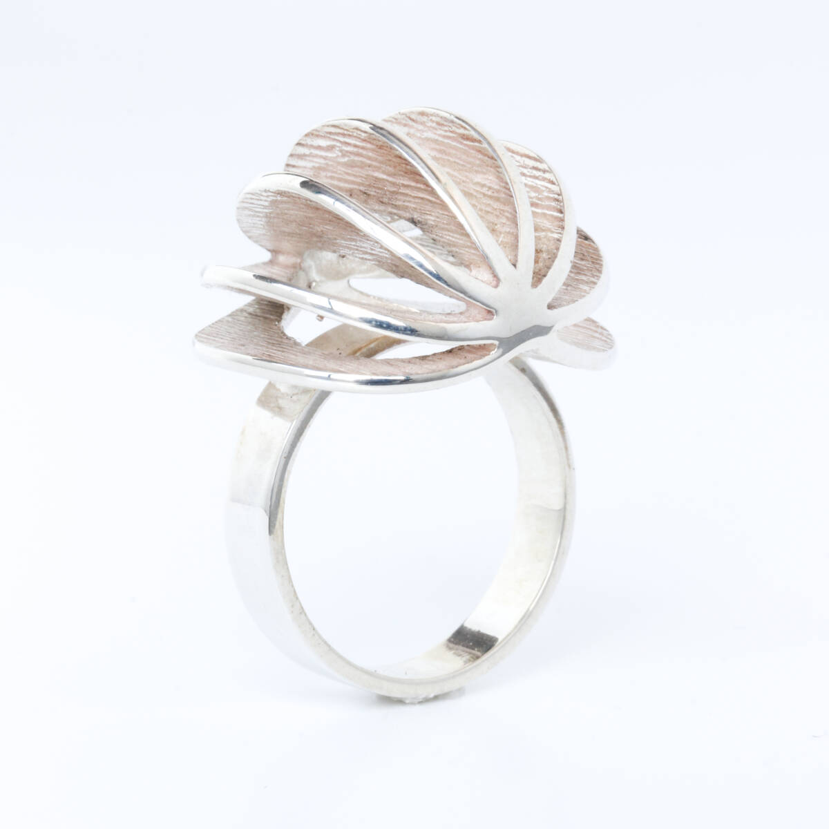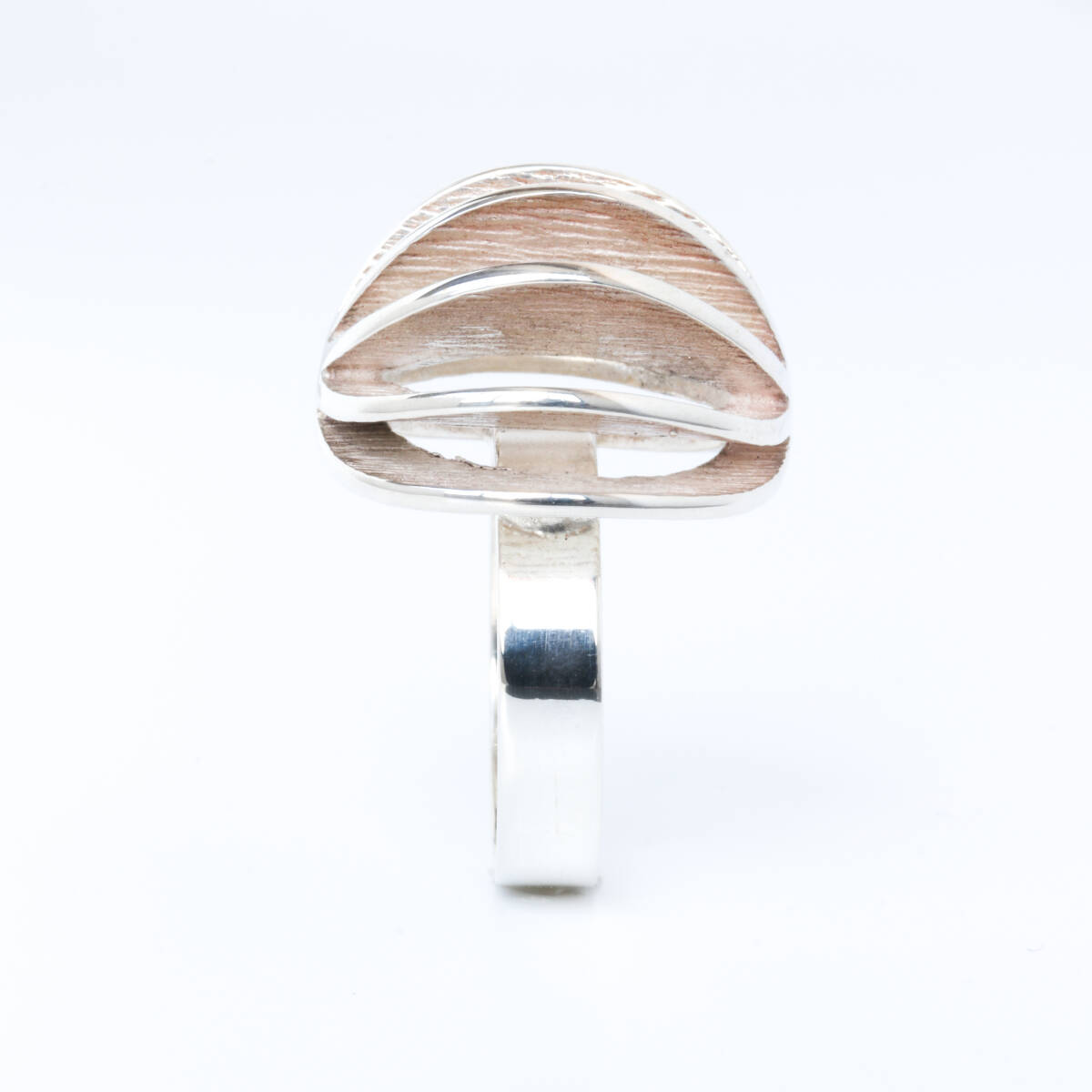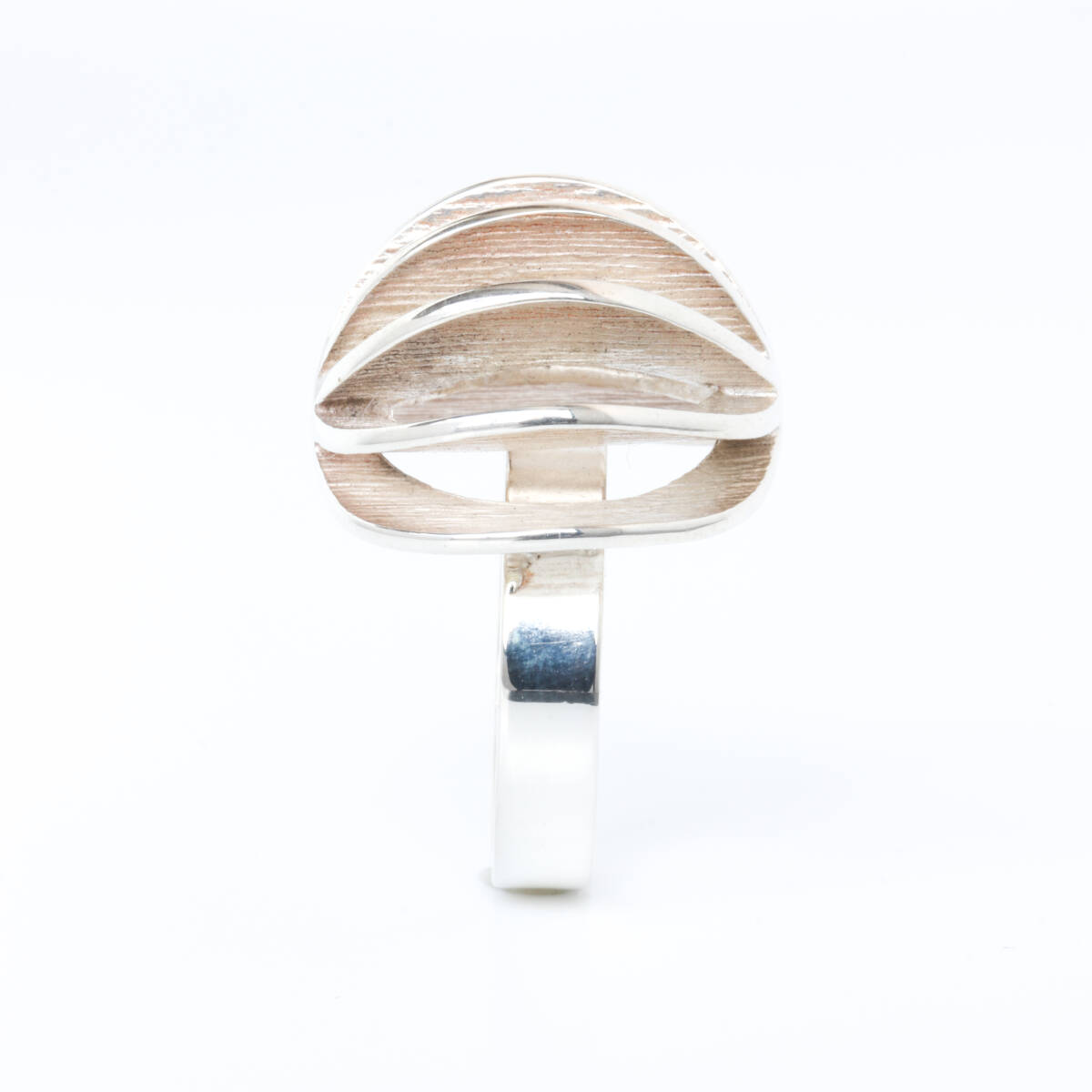 パーツの内側にテクスチャーが入ったドーム型が特徴的なリングです。