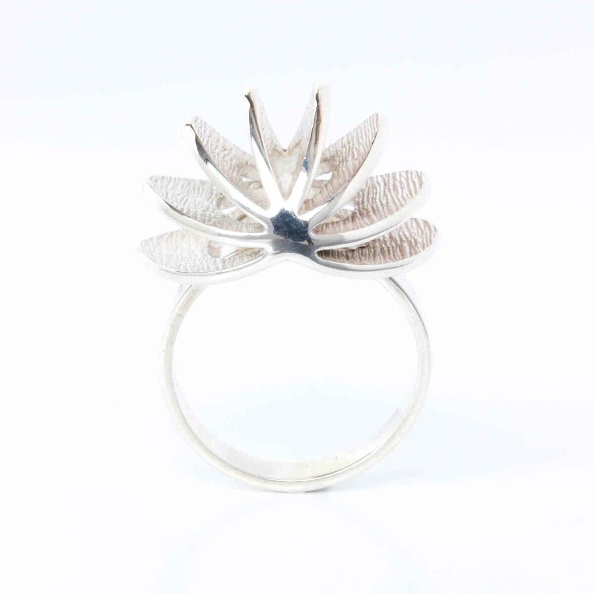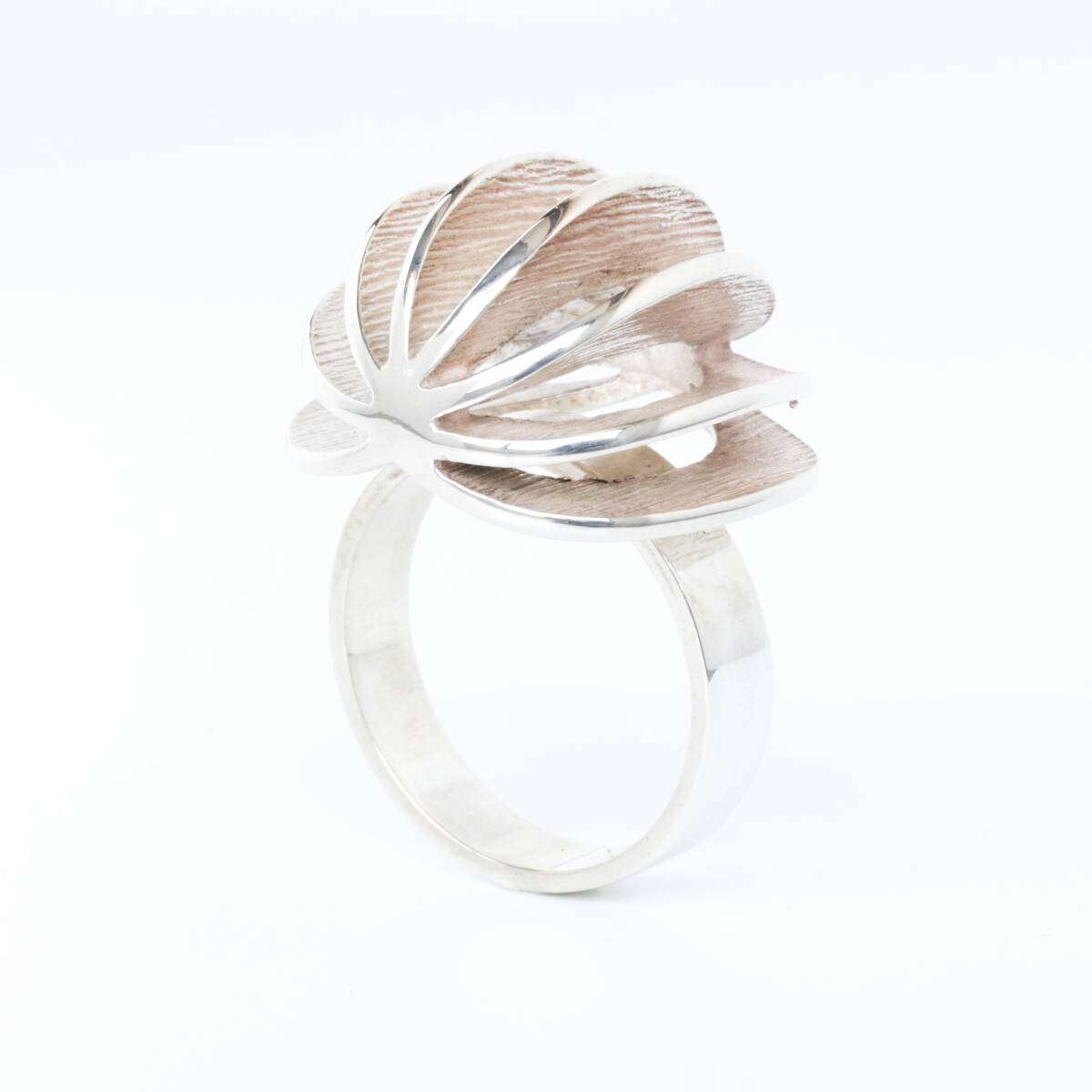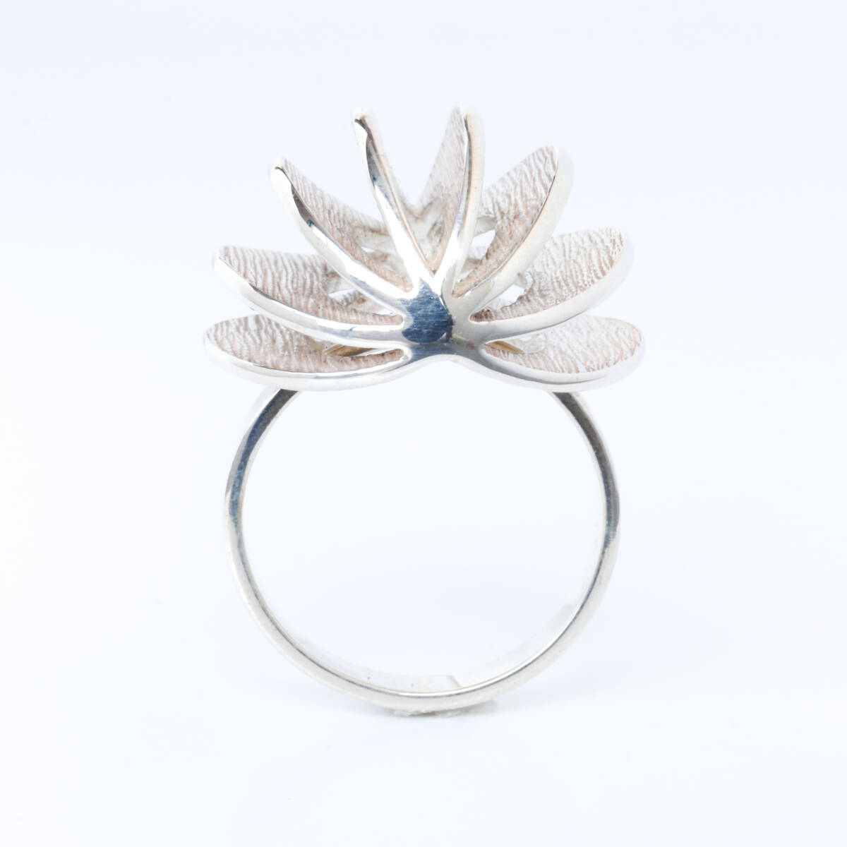 パーツの内側にテクスチャーが入ったドーム型が特徴的なリングです。