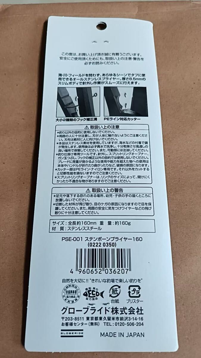 CARP (カープ) ステンボーンプライヤー 160mm 簡単な包装でパケットポスト発送予定です。輸送の過程でパッケージの折れスレ等が発生する恐れがあります。