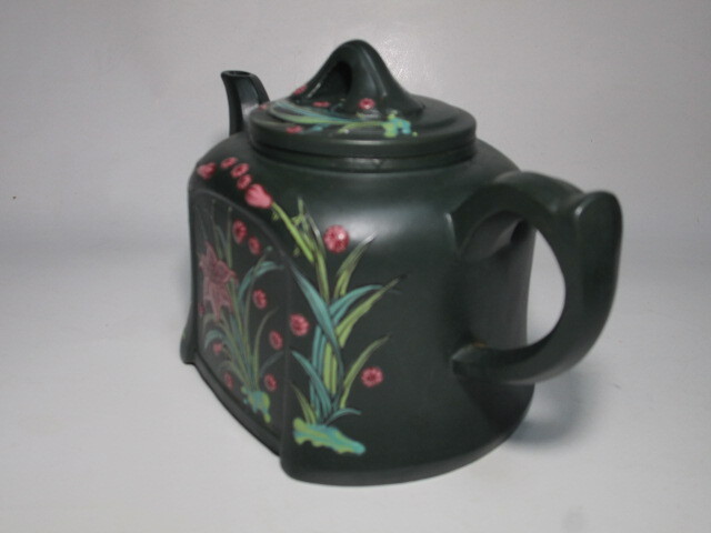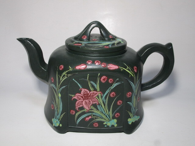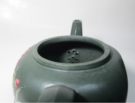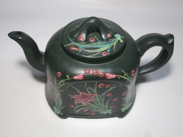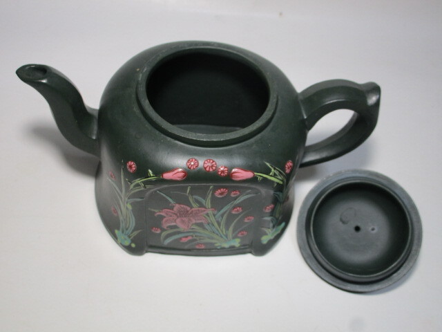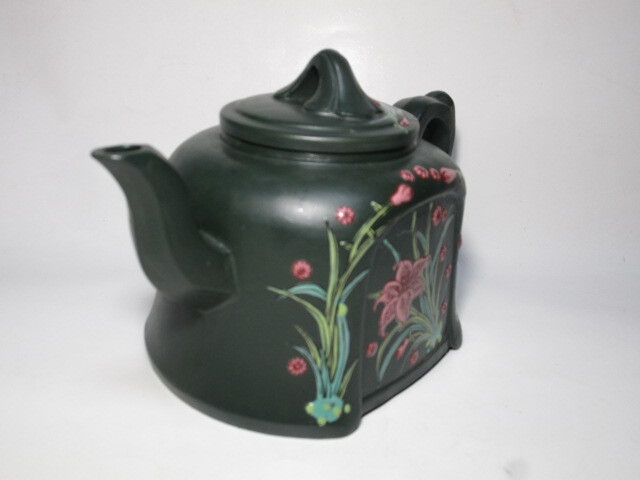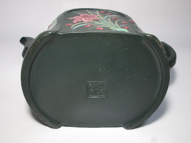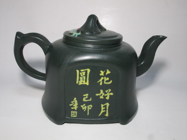 稀少 アンティーク 美品★談碧雲製 綠泥 茶壺 紫砂壺 宜興紫砂 草花紋 漢詩 急須 中国茶 茶道具 煎茶道具★