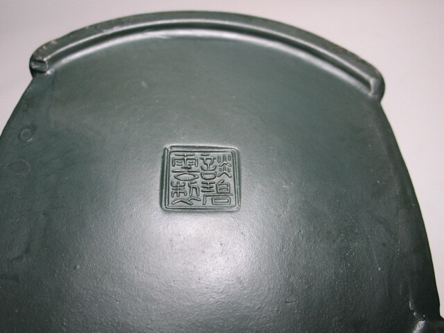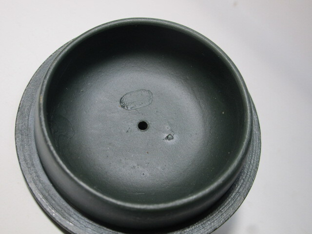 「濃緑色の泥」としても知られる稀少な「緑泥」の釣鐘型の風流な茶壷です。