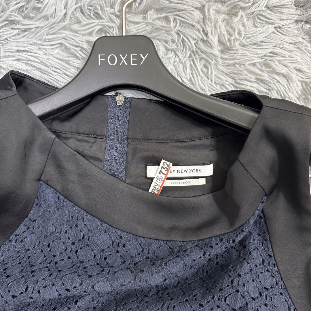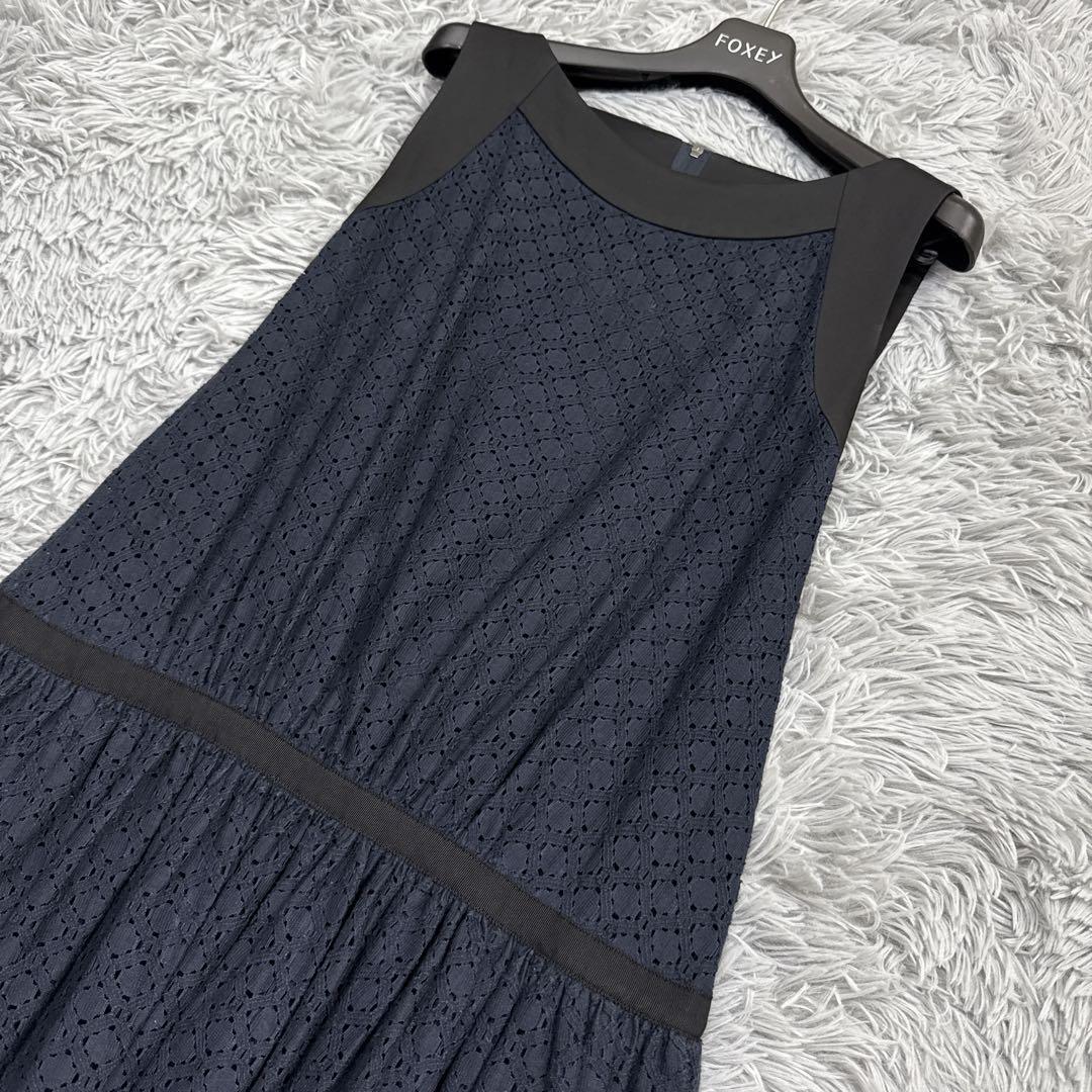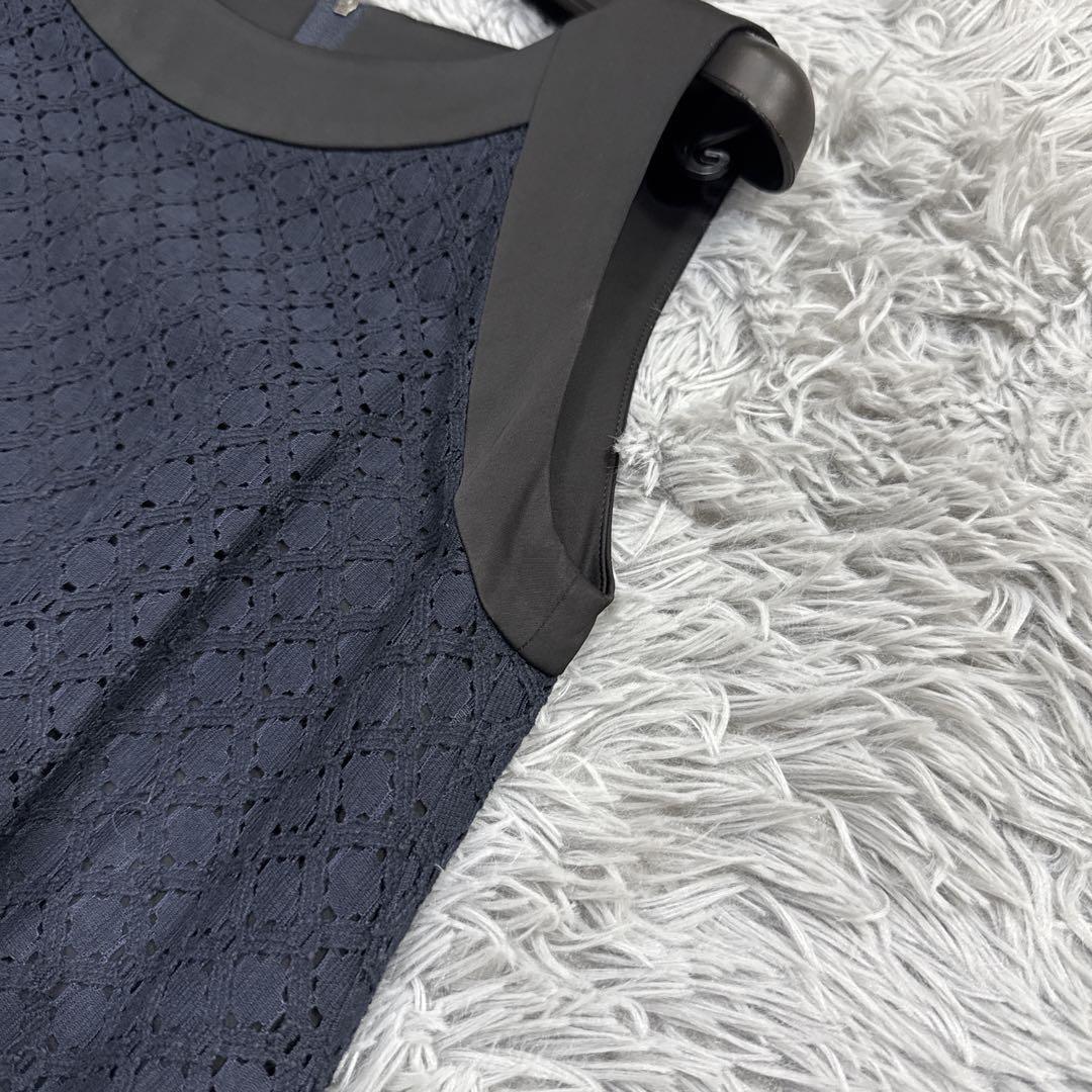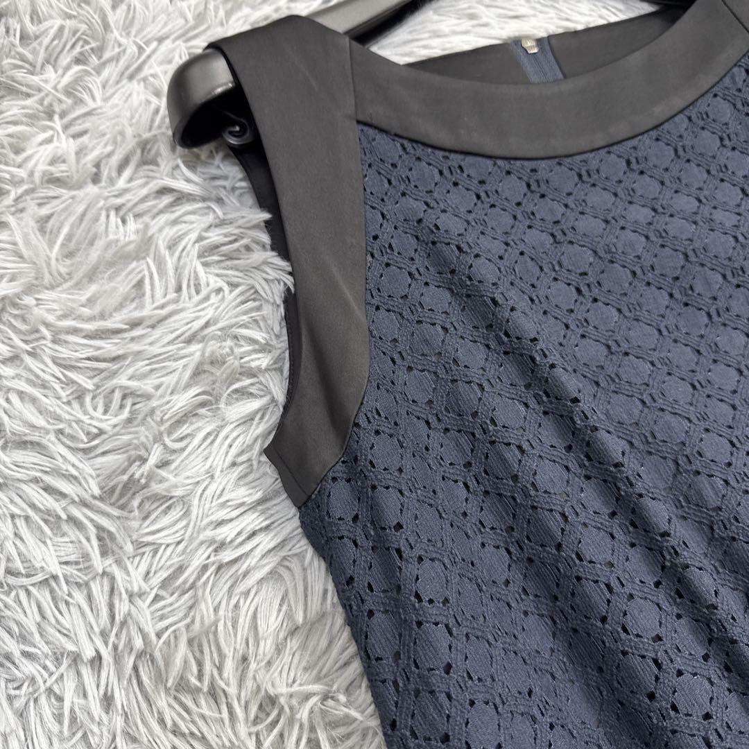 ネイビーの落ち着いた色味にブラックの縁取りが甘くなりすぎず、大人レディにもおすすめの1着です。