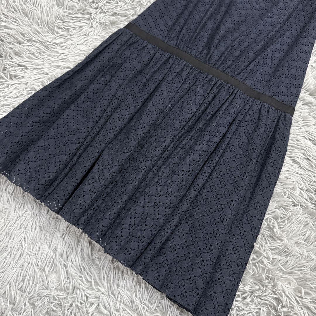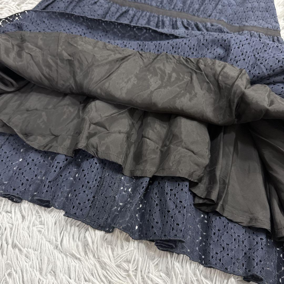 繊細なレース調の生地に、ウエスト切替から広がるティアードデザインが華やかさを演出。