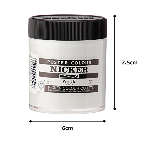 ニッカーの定番ポスターカラー。全57色。 伝統の使いやすいボトルタイプは作業性を重視した程よい固さに練りこまれており、バインダーにはスーダン産の純度の高いアラビアガムを100%使用。 発色の良さと高い隠蔽力、スムーズな筆のノビが特徴です。 広告・商業デザイン、アニメーションの制作などプロの現場に欠かせないアイテムです。 扱い易さと豊富な色数でプロの現場からデザイン、教育のシーンで絶大な支持を受けています。 用途:描画・デザイン・工作・版画 水性・水溶性・不透明。