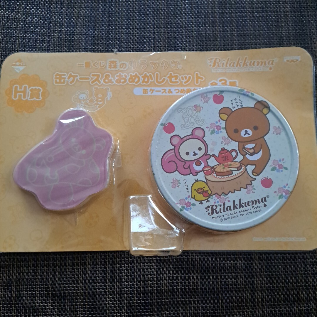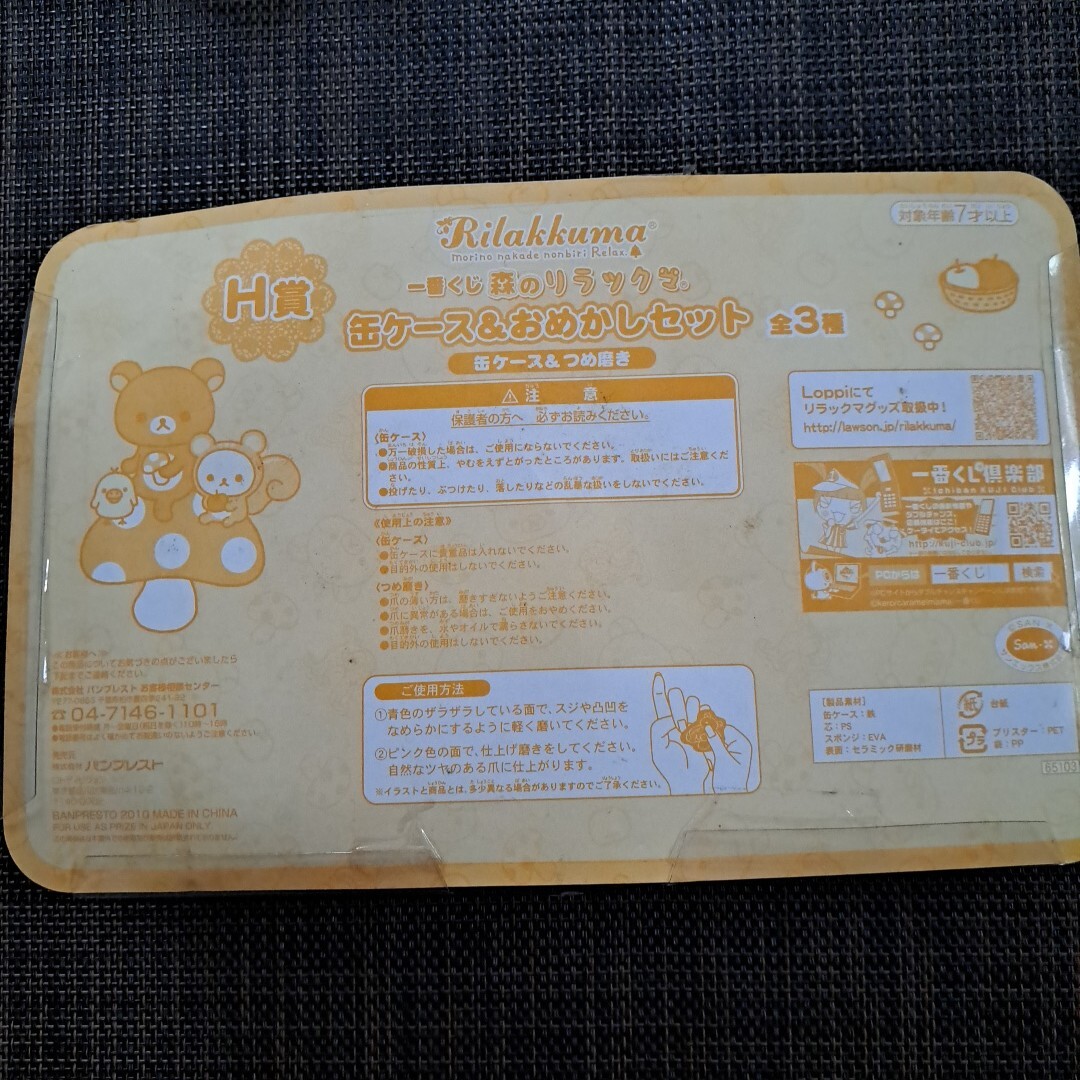 BANPRESTO【森のリラックマ 缶ケース&おめかしセット】です。缶ケースとつめ磨きのセットです。パッケージのセロテープはがれがあります。