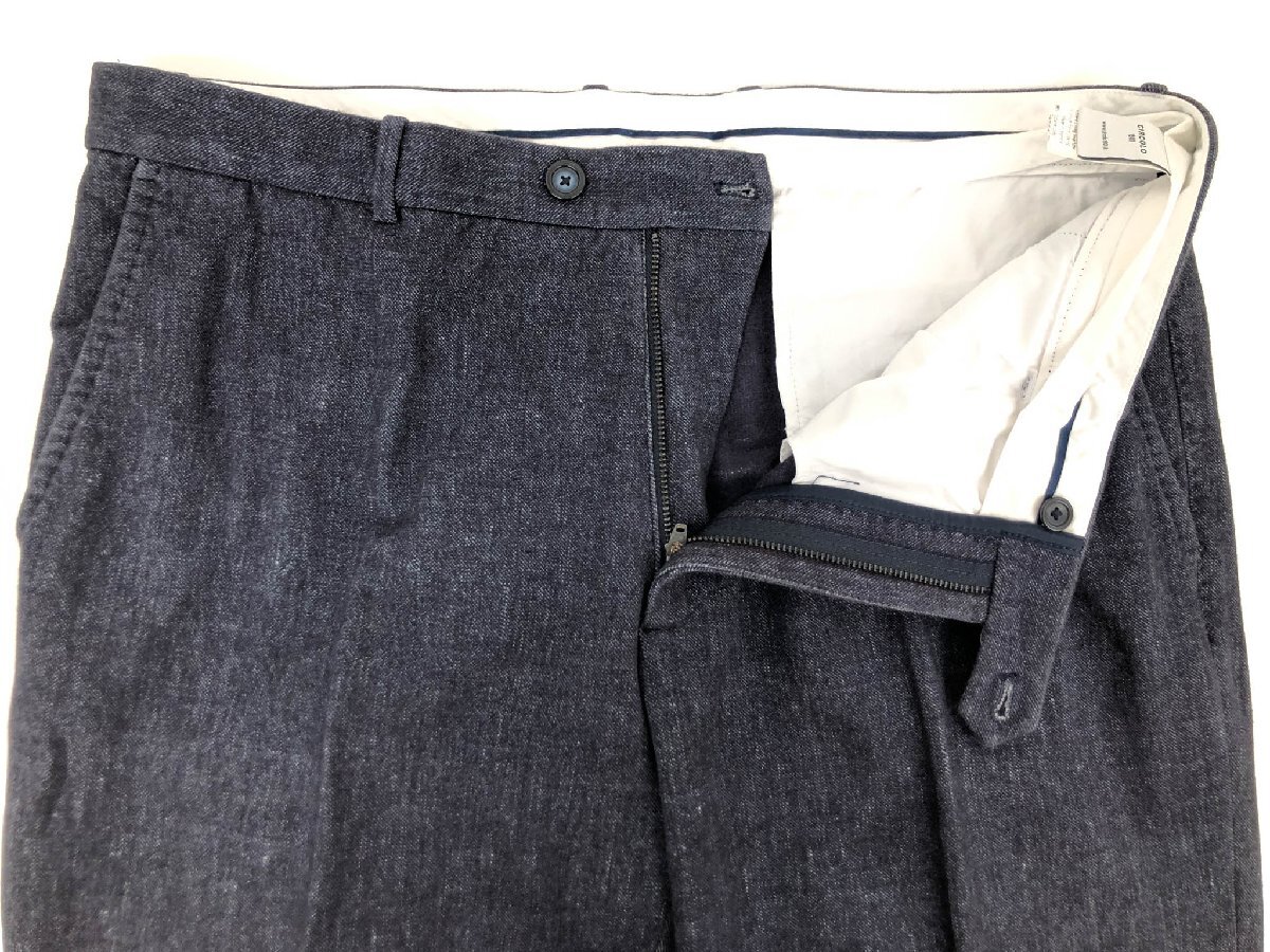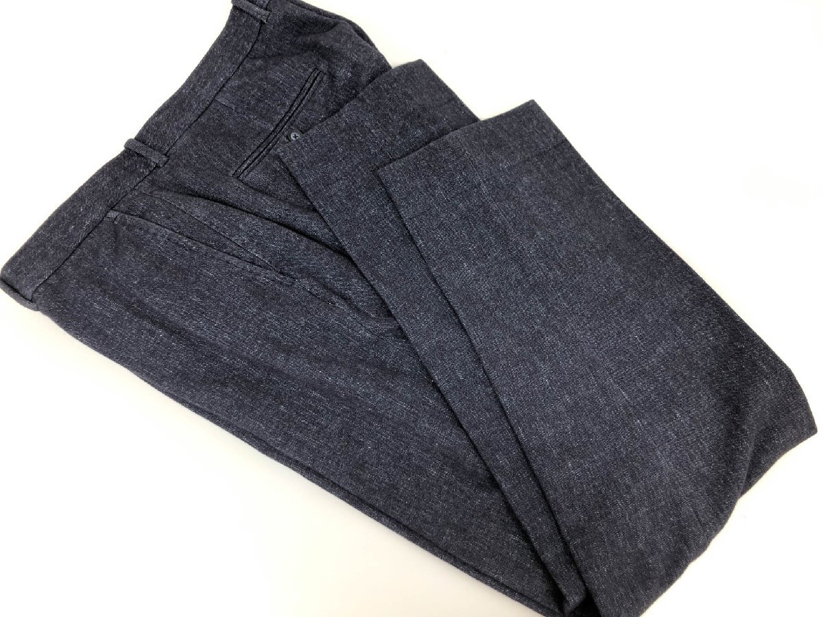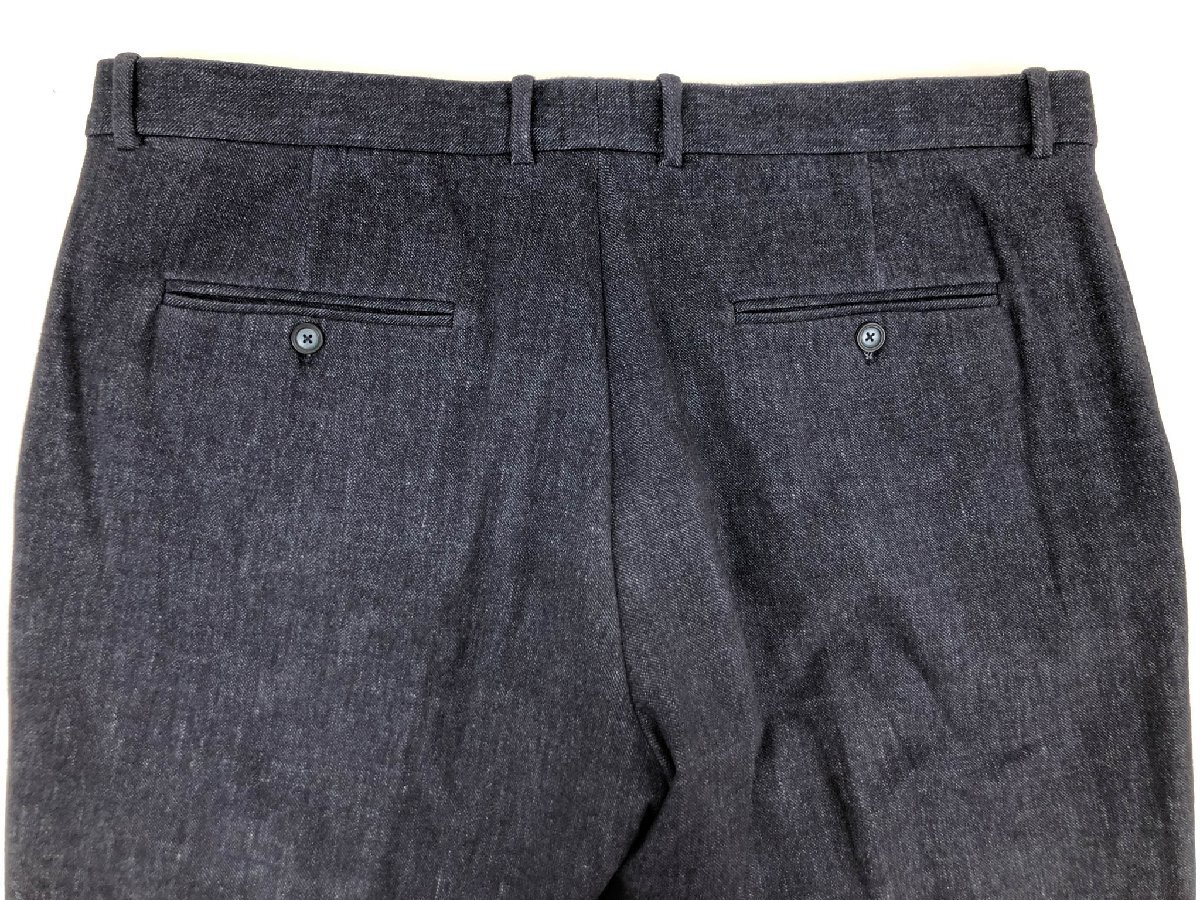 ・スラックス・・・ウエスト実寸約94~95センチ(最大1センチ出し、4センチ詰めが可能です。)、股上約28センチ、渡り幅約35センチ、股下約76センチ、総丈約100センチ、裾幅約18.5センチ、シングル仕立て(最大約3センチ出しが可能です。)
