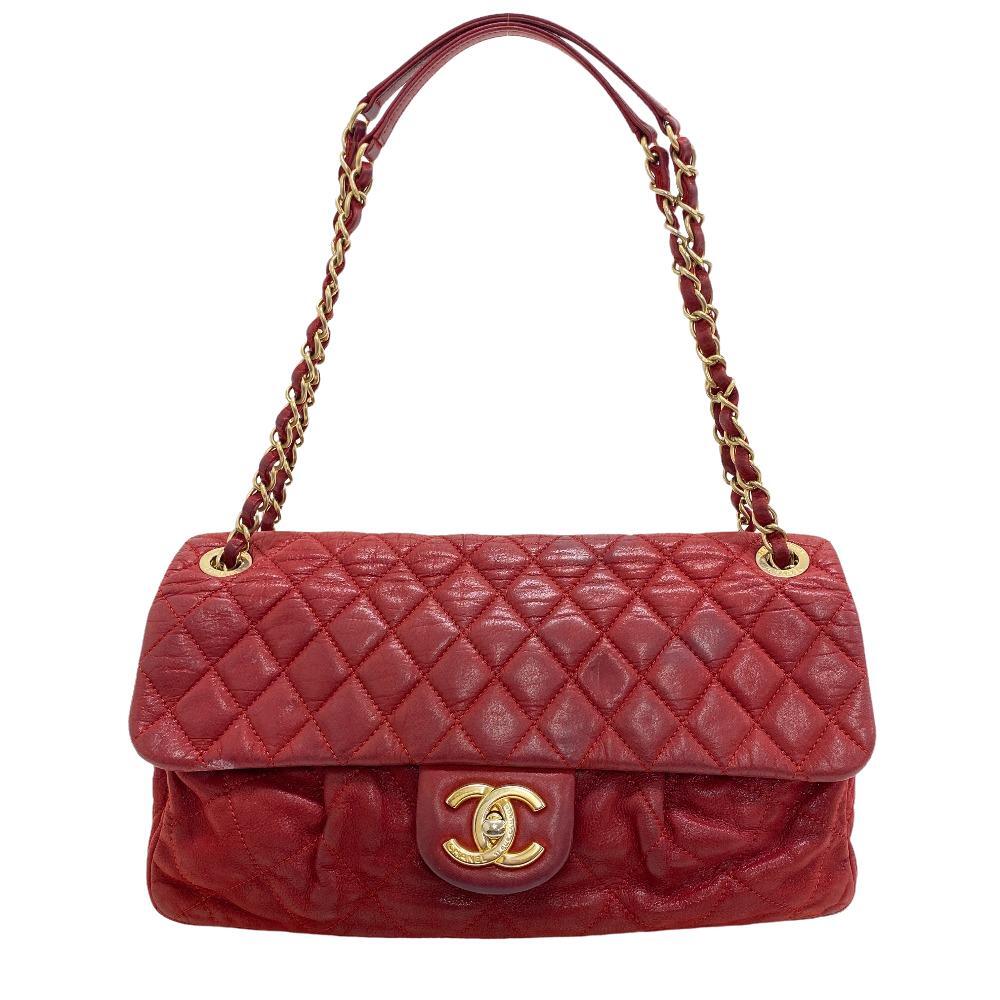 商品名 | CHANEL/シャネル シングルフラップ ダブルチェーンバッグ マトラッセ ココマーク ショルダーバッグ レッド レディース |