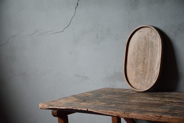 NO.09004 古い小さなお盆 検索用語→Bアンティークヴィンテージ古道具トレー小振りお盆煎茶盆楕円刳り貫き盆オーバルトレイ