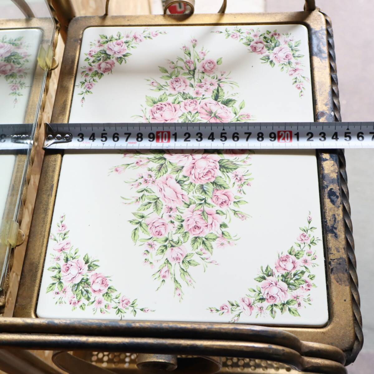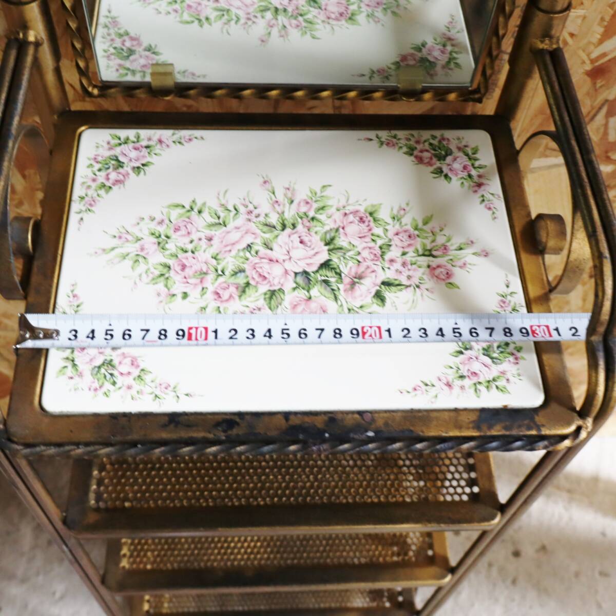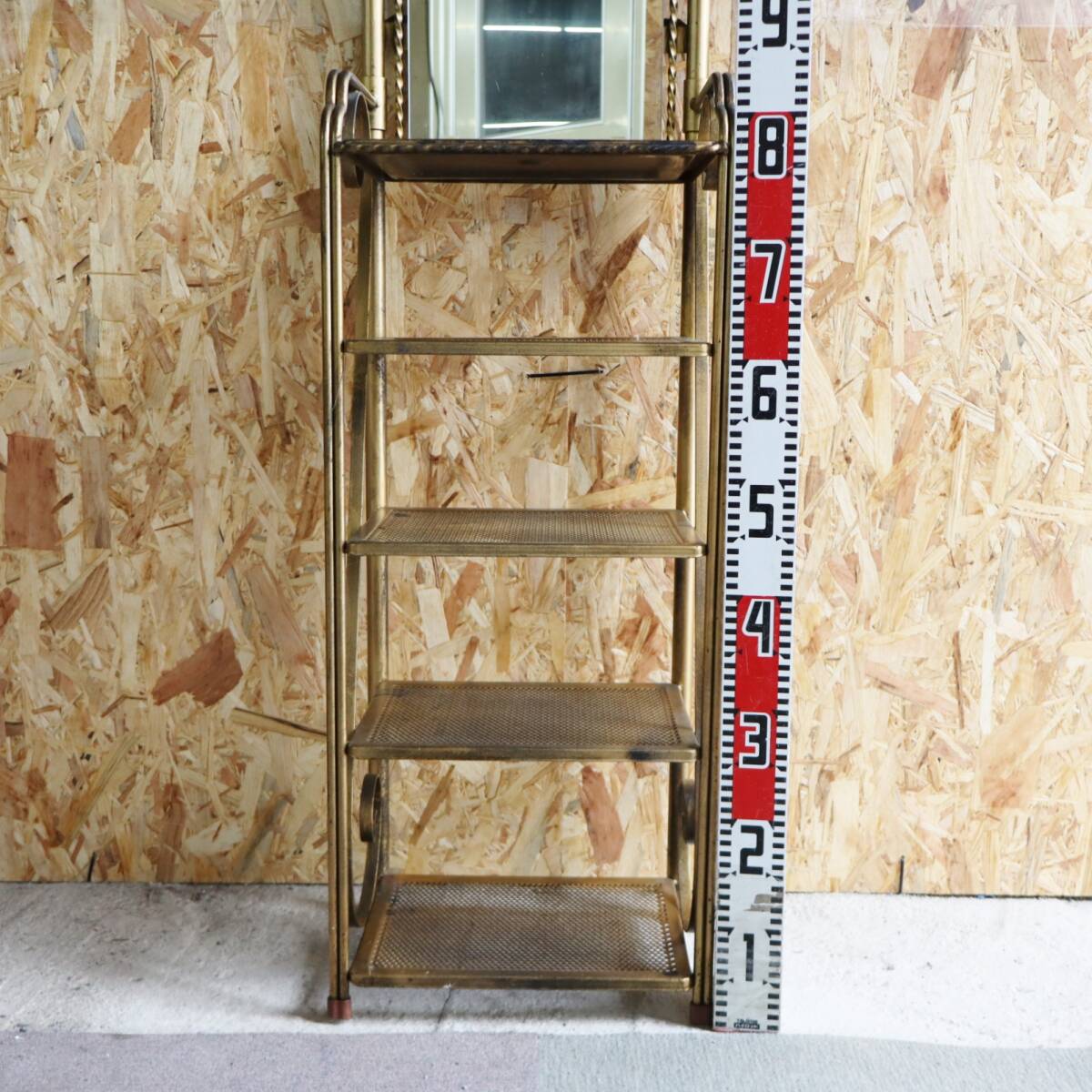 ∀倉庫引取歓迎 使用品|スリッパラック 下駄箱 金属製 鏡付 | | シューズラック 靴収納棚 アンティーク■P2324