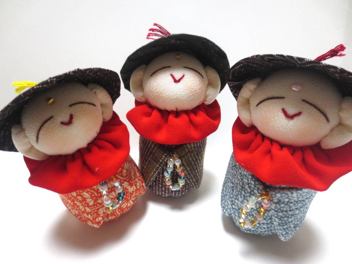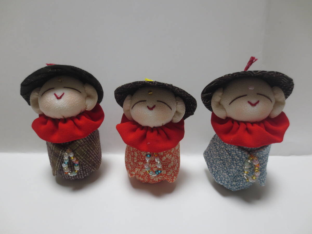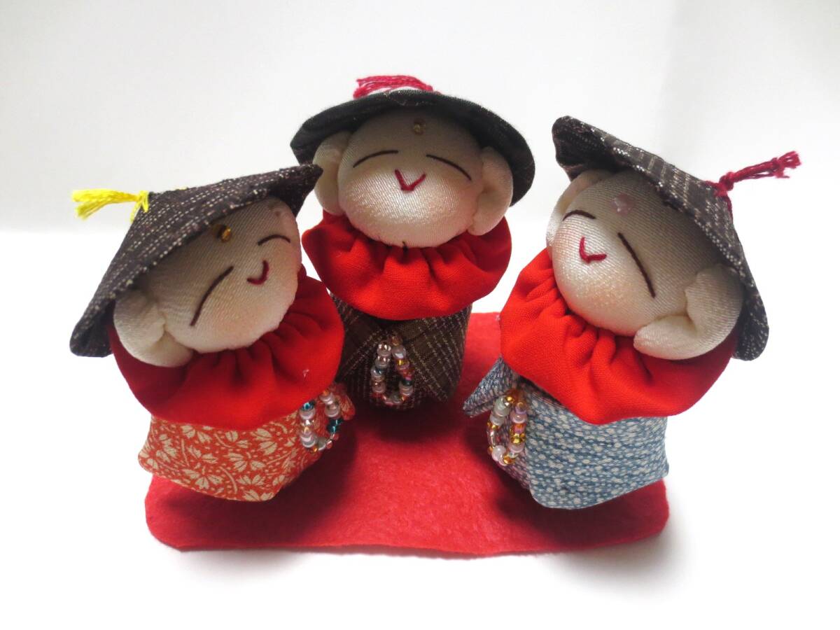 おじぞうさん お地蔵様 笠地蔵 古布 ぬいぐるみ 着物リメイク 手作り人形 ハンドメイド 3体並び