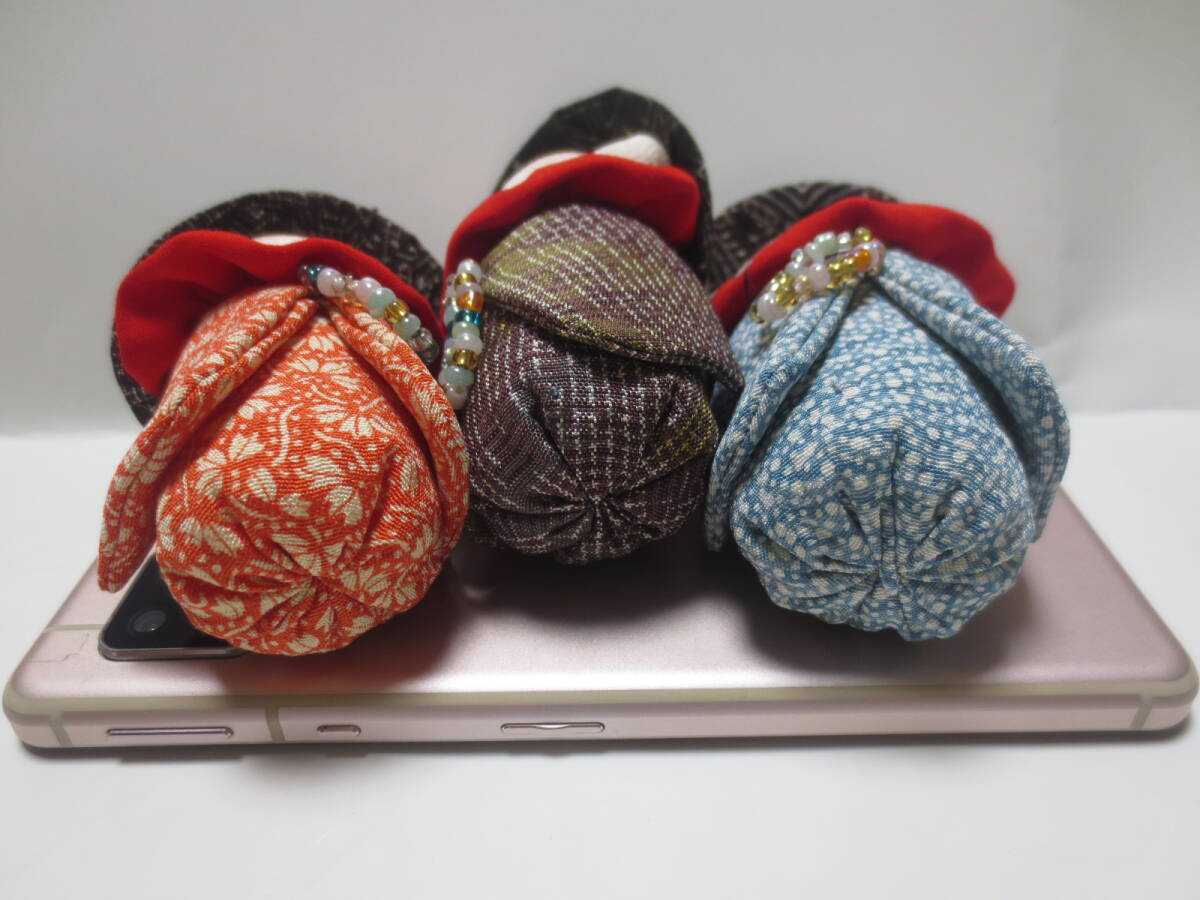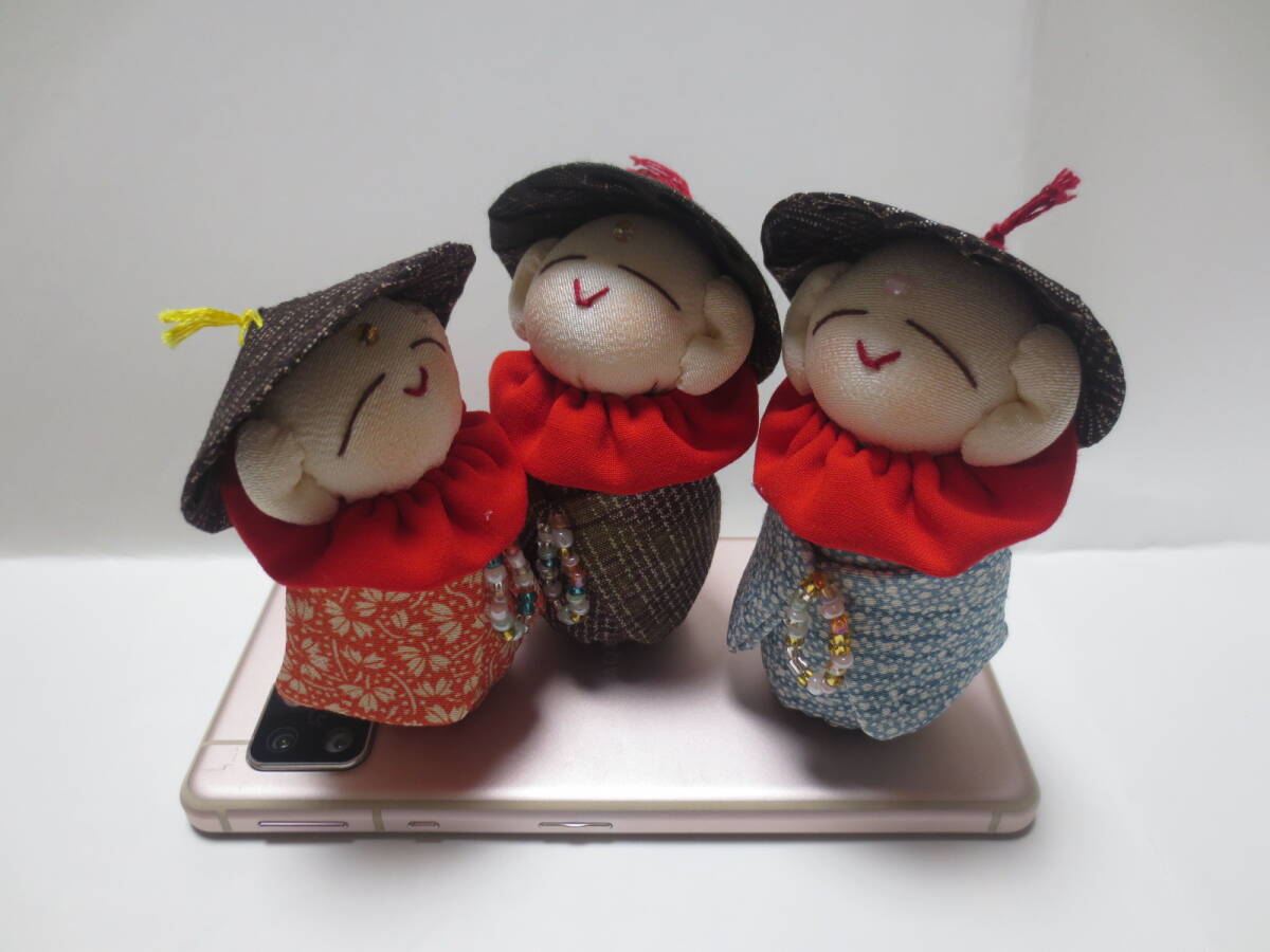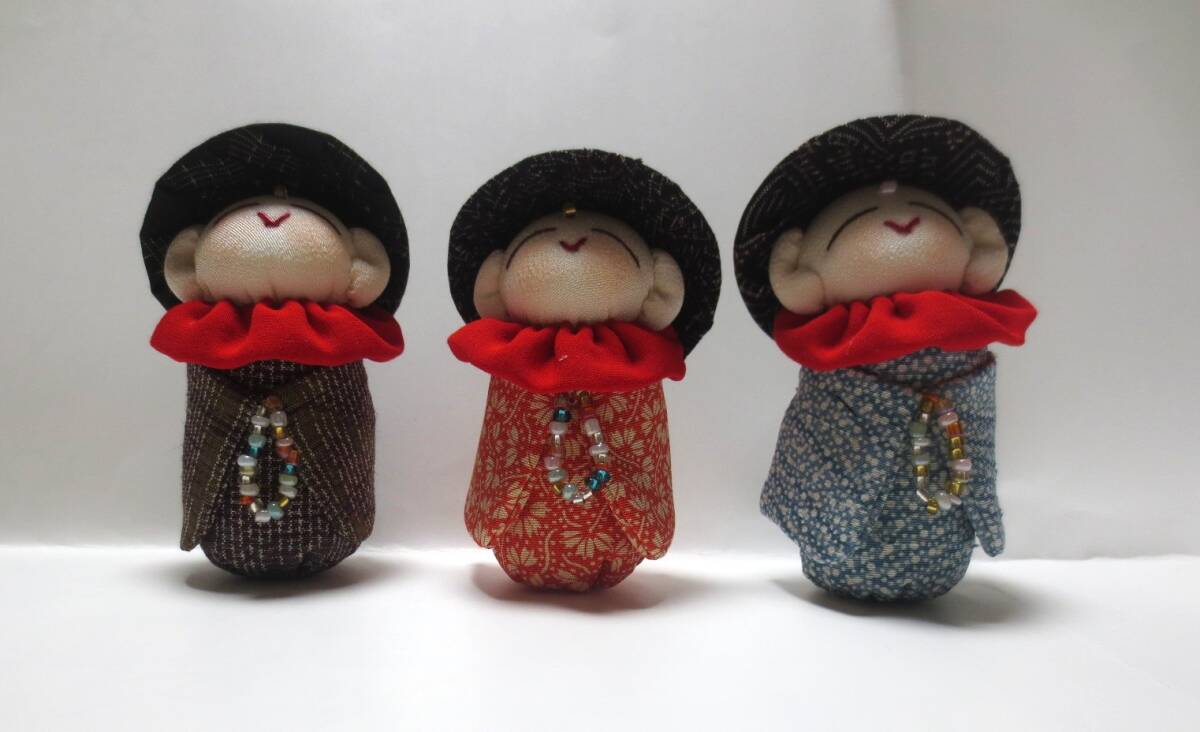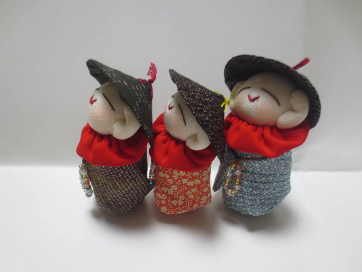 おじぞうさん お地蔵様 笠地蔵 古布 ぬいぐるみ 着物リメイク 手作り人形 ハンドメイド 3体並び