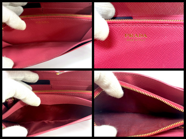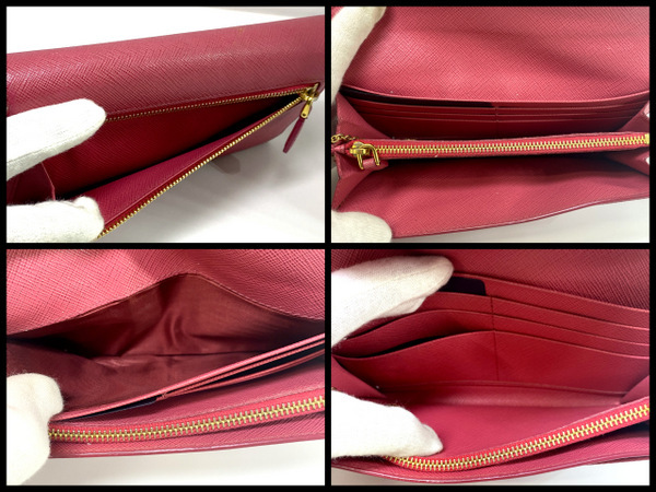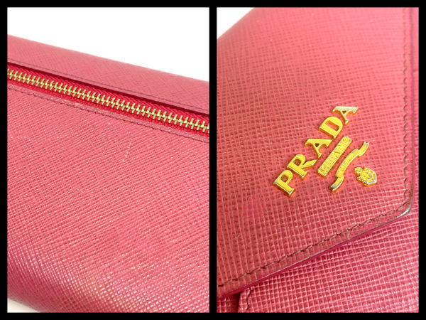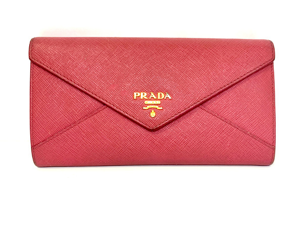 【即決】 PRADA プラダ サフィアーノレザー 長財布 財布 サイフ ロゴ レターウォレット PEONIA ピンク 1MH037 パスケース付き