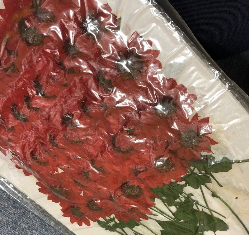 1スタ☆送料無料☆本物 押し花素材 ハンドメイド 花材 DR101O 押し花 ミニヒマワリ レッド染