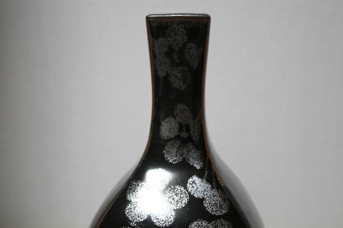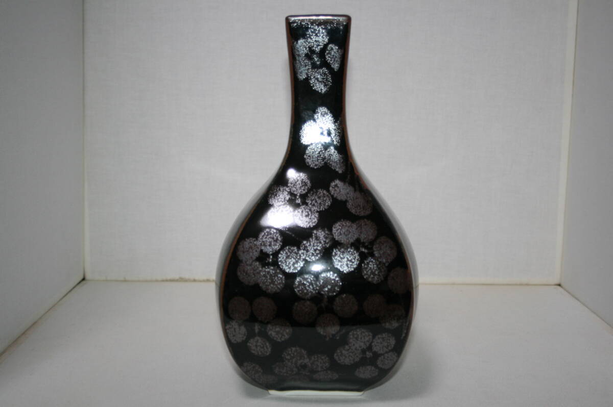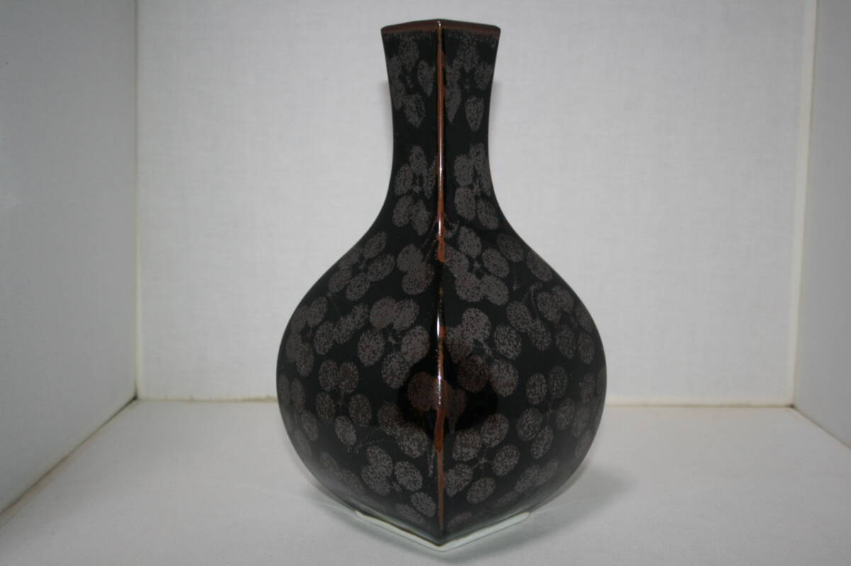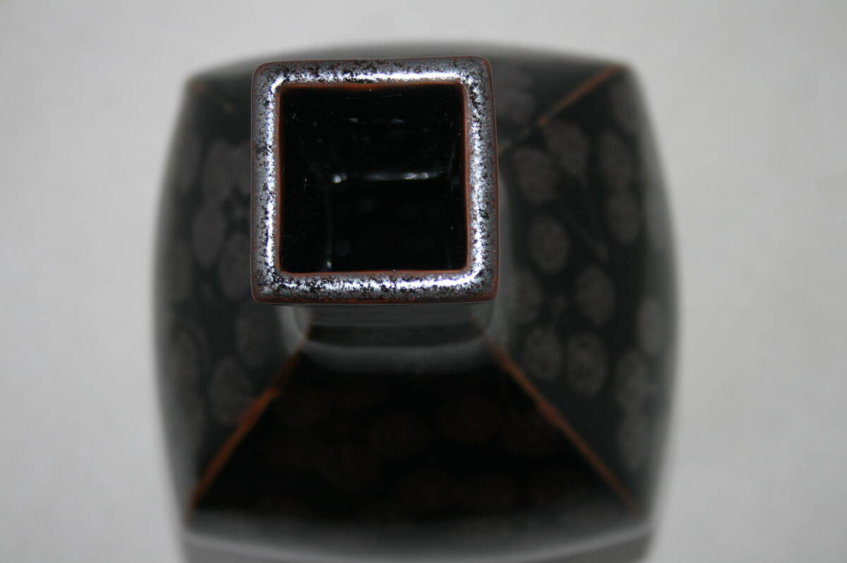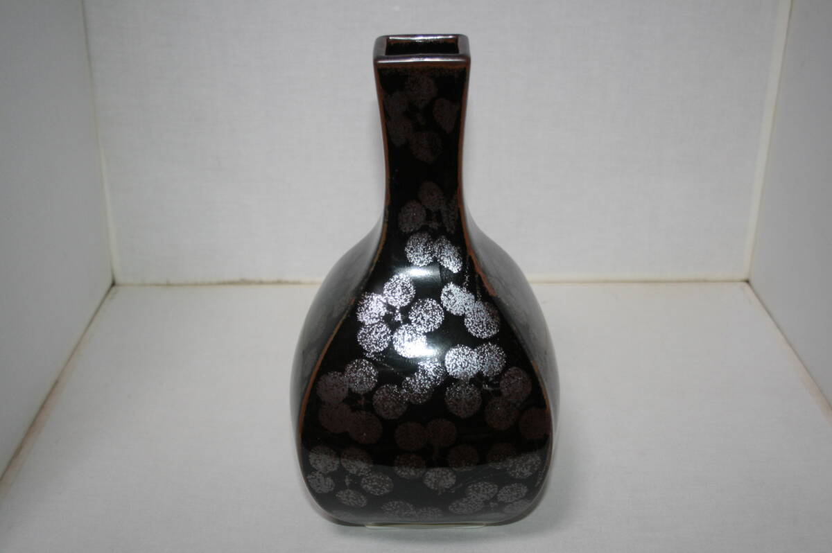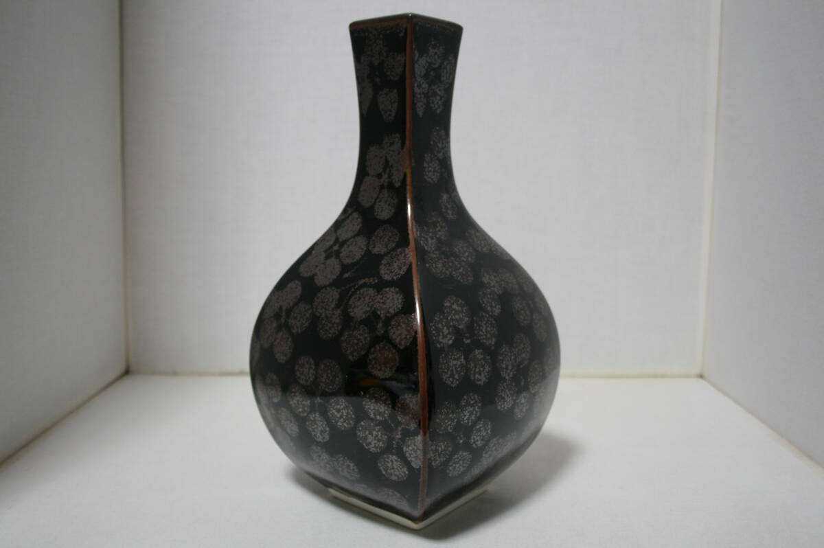 藤井朱明/四方割/花瓶です。天目に梅散し文を描いた雰囲気の良いお品です。目立った傷汚れは有りませんが、必ず画像確認の上、入札をお願い致します。