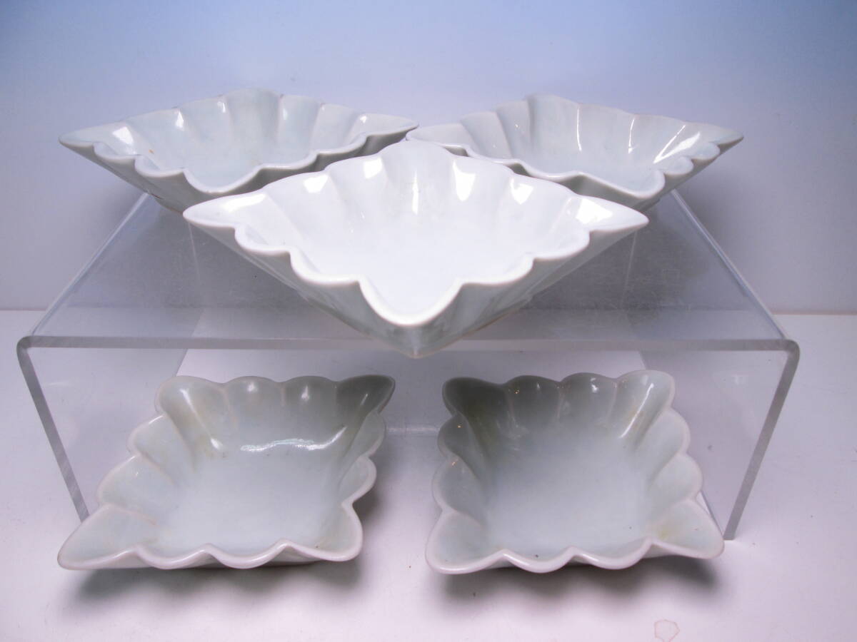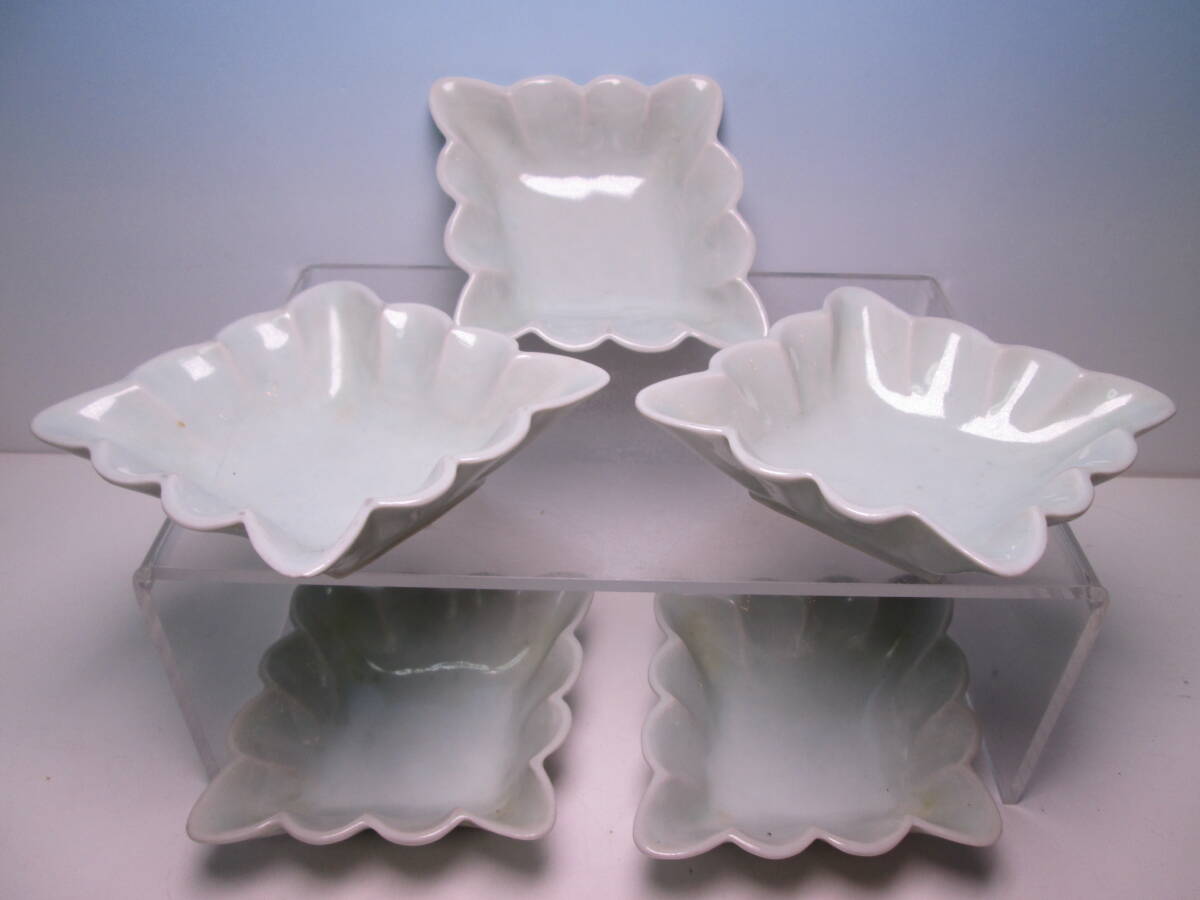 ☆お料理屋さんの器 白磁 輪花形 向付 五客 箱無 小鉢/茶懐石/割烹/日本料理