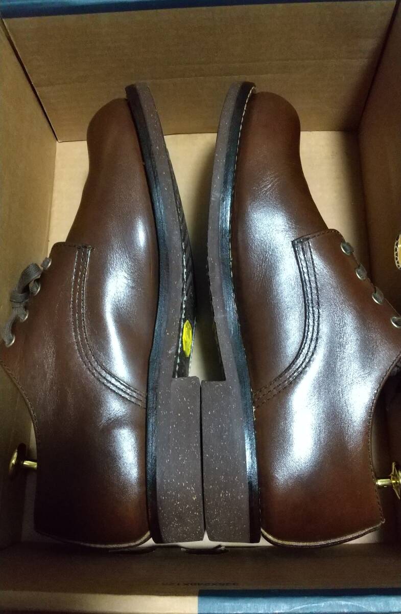 よくよく見ると目立たないレベルの薄い擦れ跡、小傷がいくつか有りますが、画像の通り中古靴としては非常に綺麗だと思います。