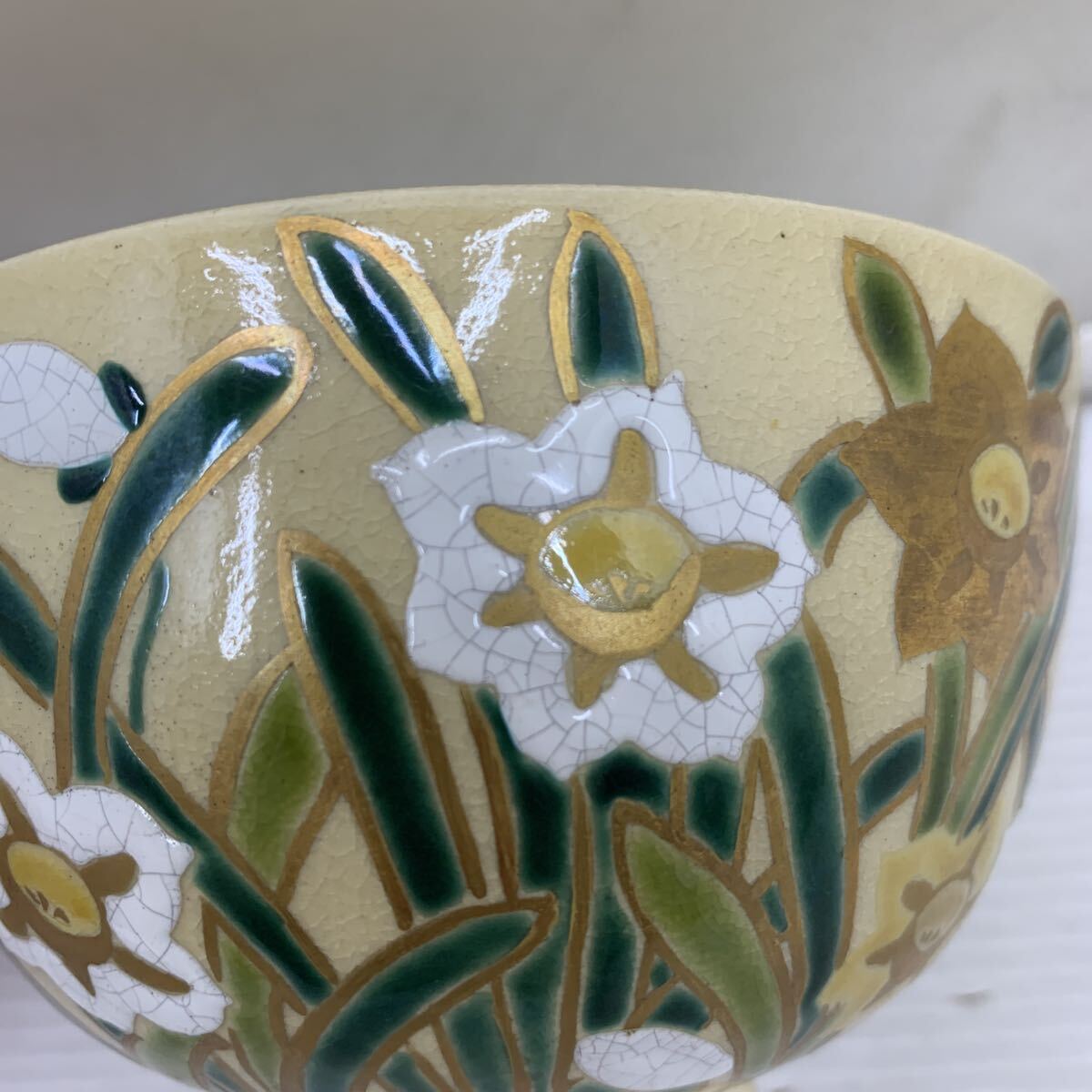 I☆レア☆茶碗 茶道具 抹茶碗 茶器 京焼 陶器 箱無し 茶道 香宋 金彩 和食器 陶器 花柄 日本製 伝統工芸品 アンティーク ヴィンテージ