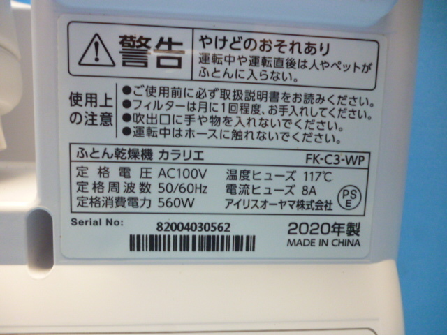 Q575 アイリスオーヤマ 布団乾燥機 FK-C3-WP | |||