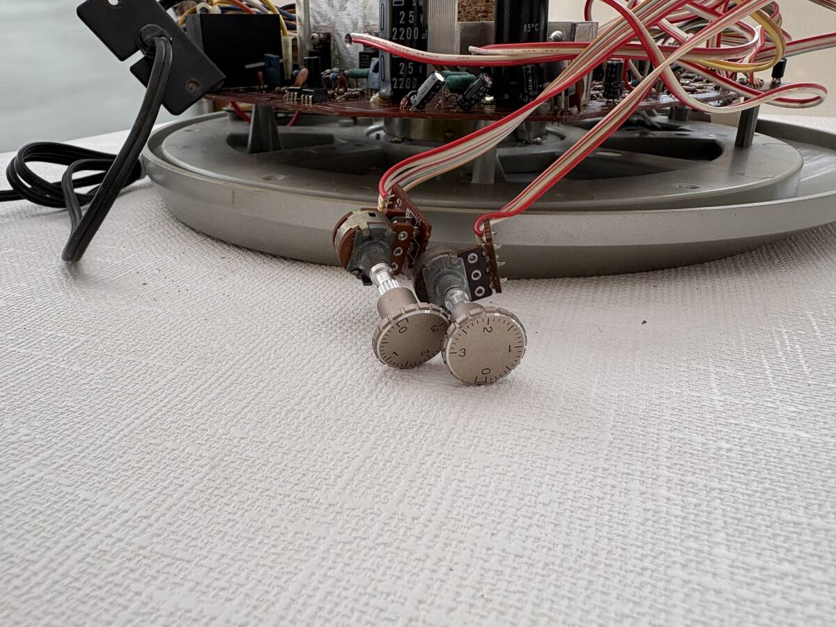 トーンアームへの配線とプラッターの裏にあります部品のケーブルは切断しております。