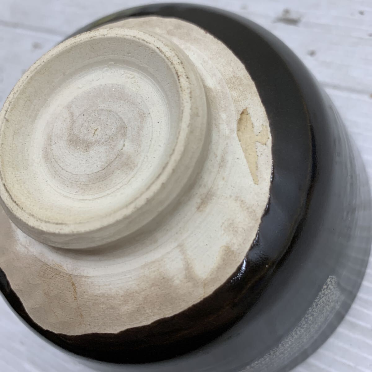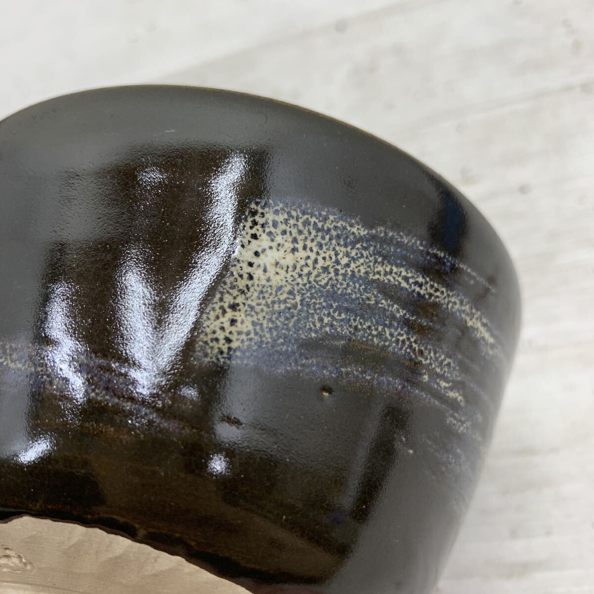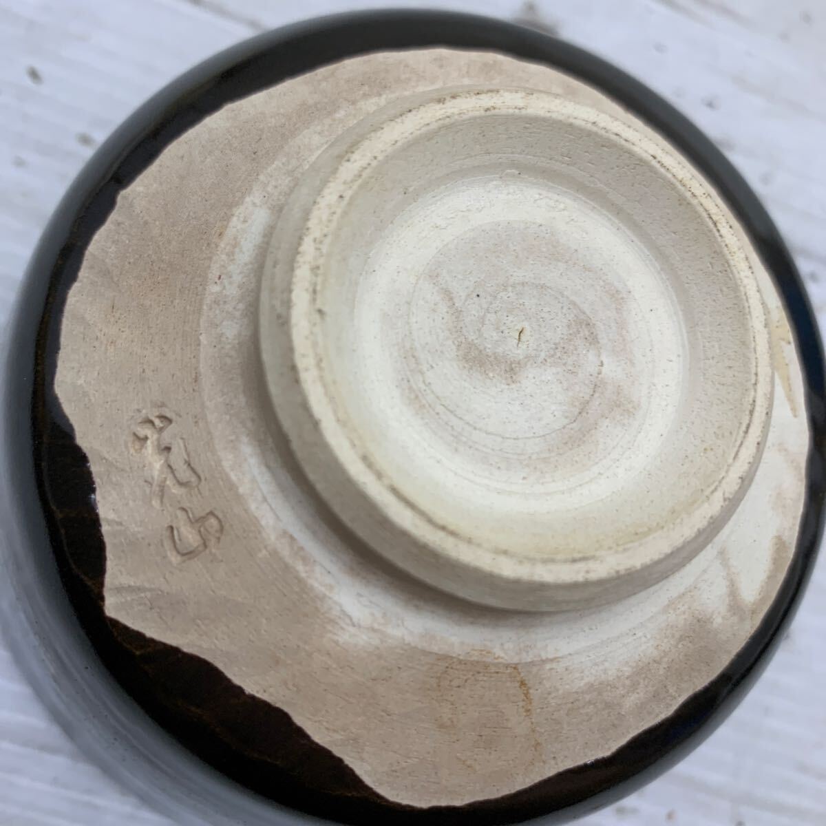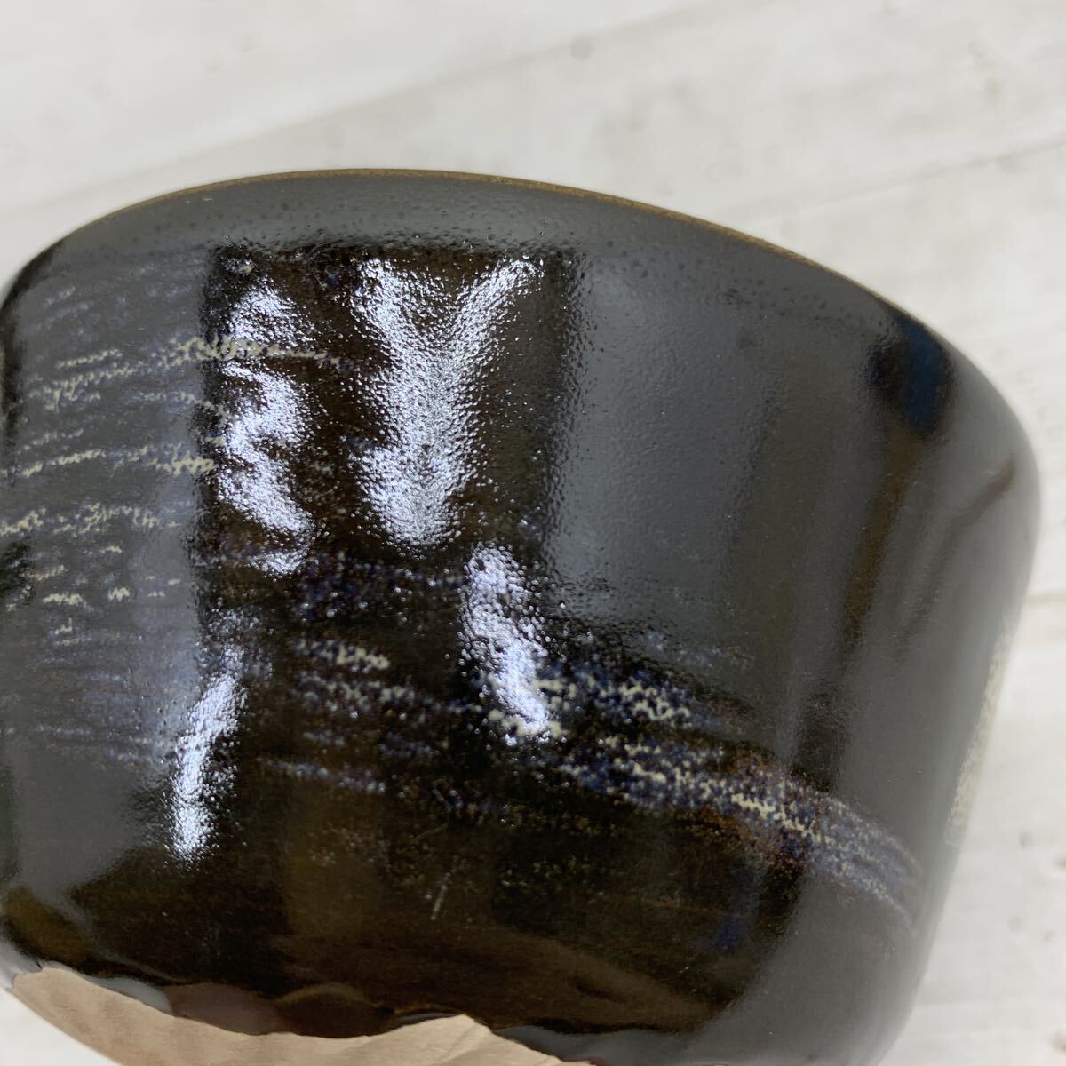 I☆レア☆光山 黒 茶碗 茶道具 陶器 茶器 抹茶碗 骨董品 窯変 黒 福蔵 在銘 お茶碗 お椀 黒色 インテリア アンティーク ヴィンテージ