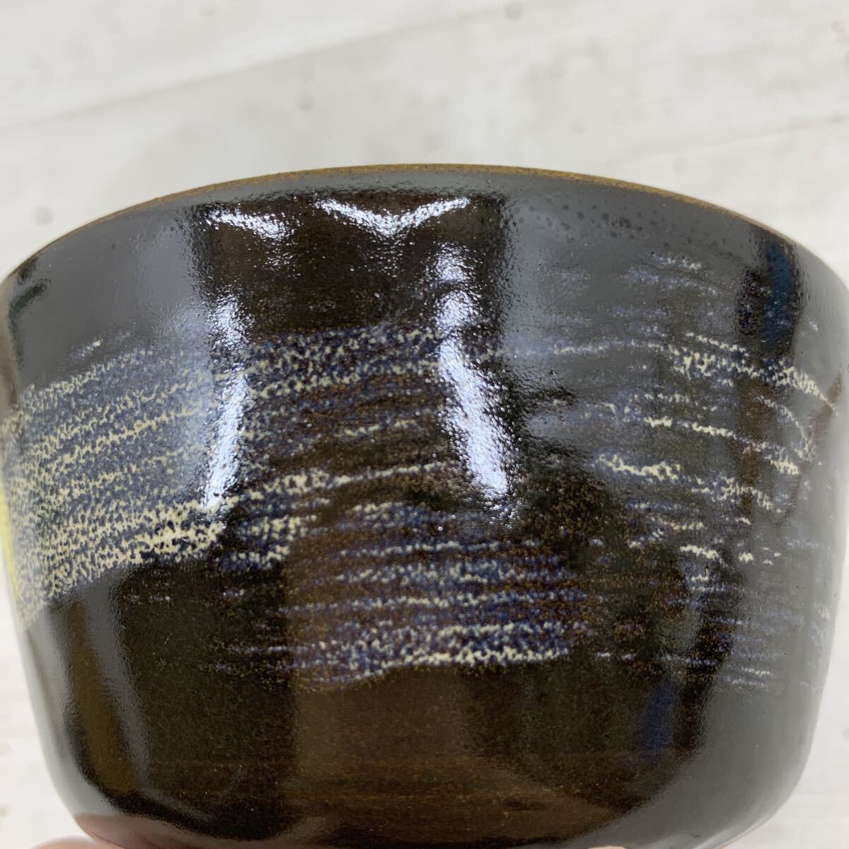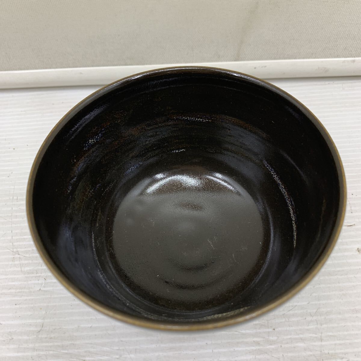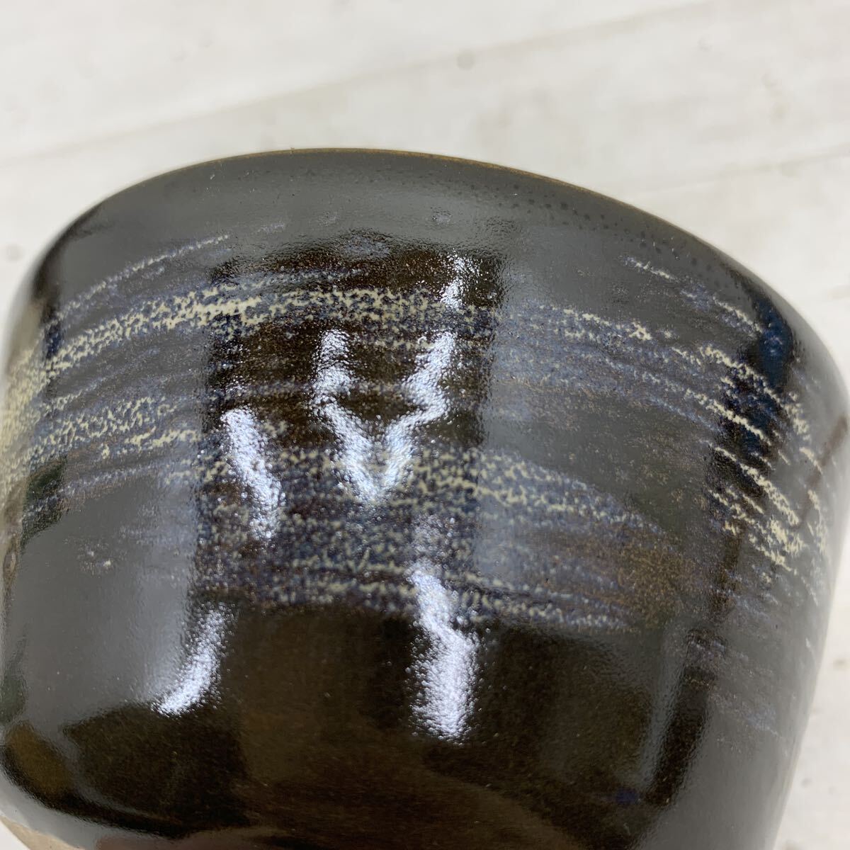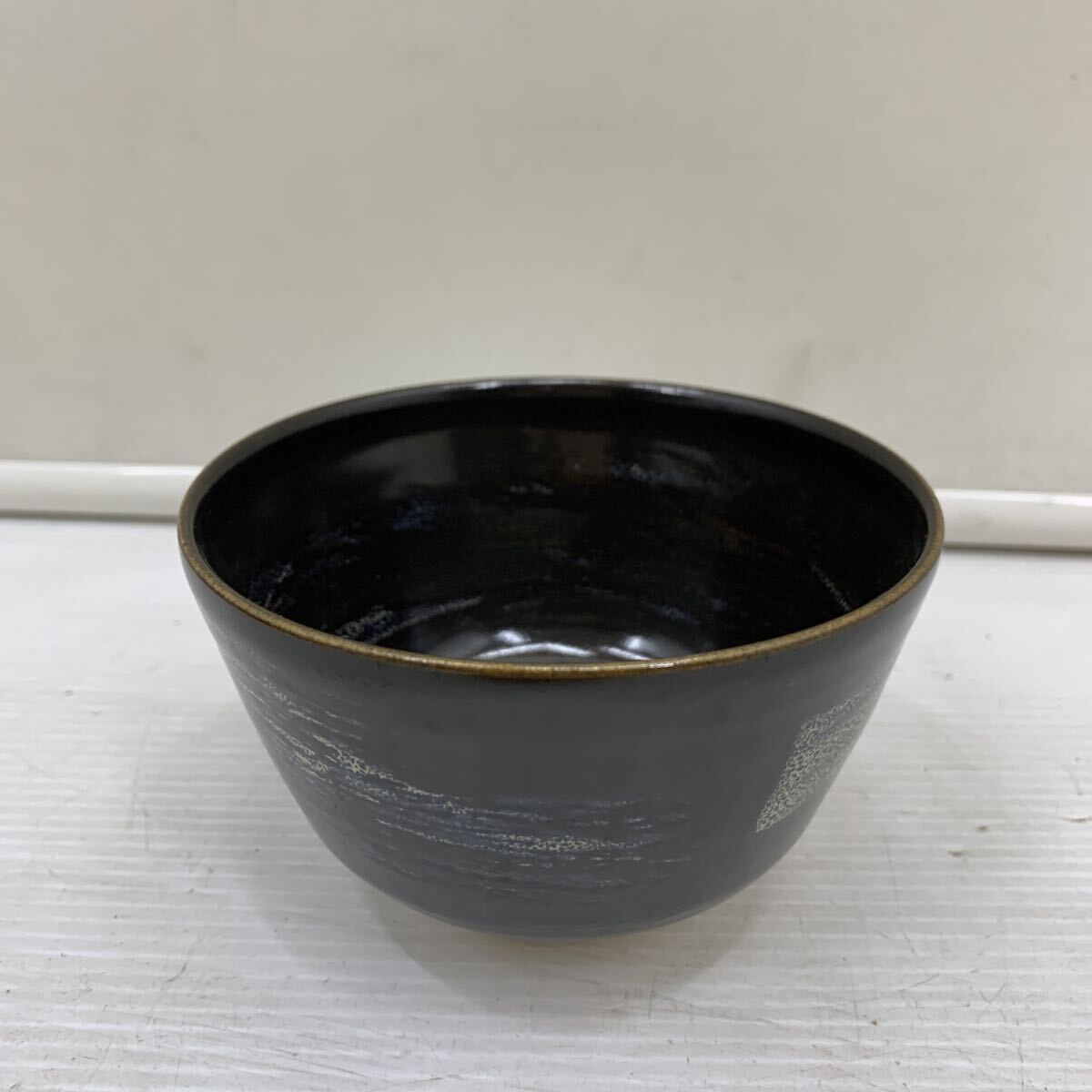 I☆レア☆光山 黒 茶碗 茶道具 陶器 茶器 抹茶碗 骨董品 窯変 黒 福蔵 在銘 お茶碗 お椀 黒色 インテリア アンティーク ヴィンテージ