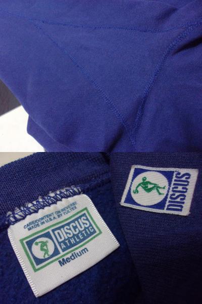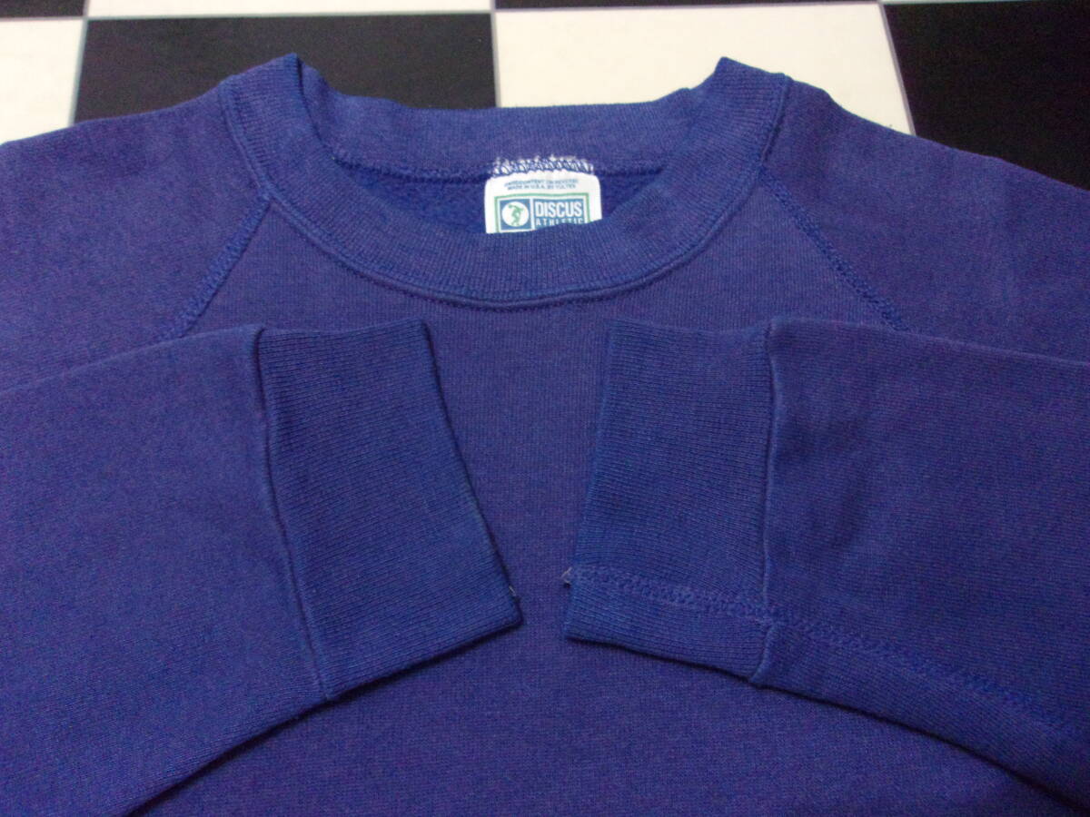 90s USA製 DISCUS スウェット 90年代 オールド ディスカス 無地 ネイビー紺色系 ラグラン 脇下三角ガゼット VINTAGE ビンテージ 古着
