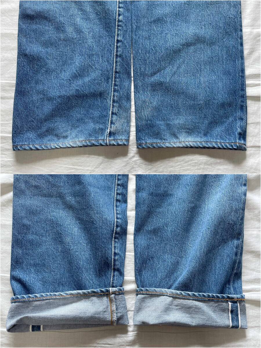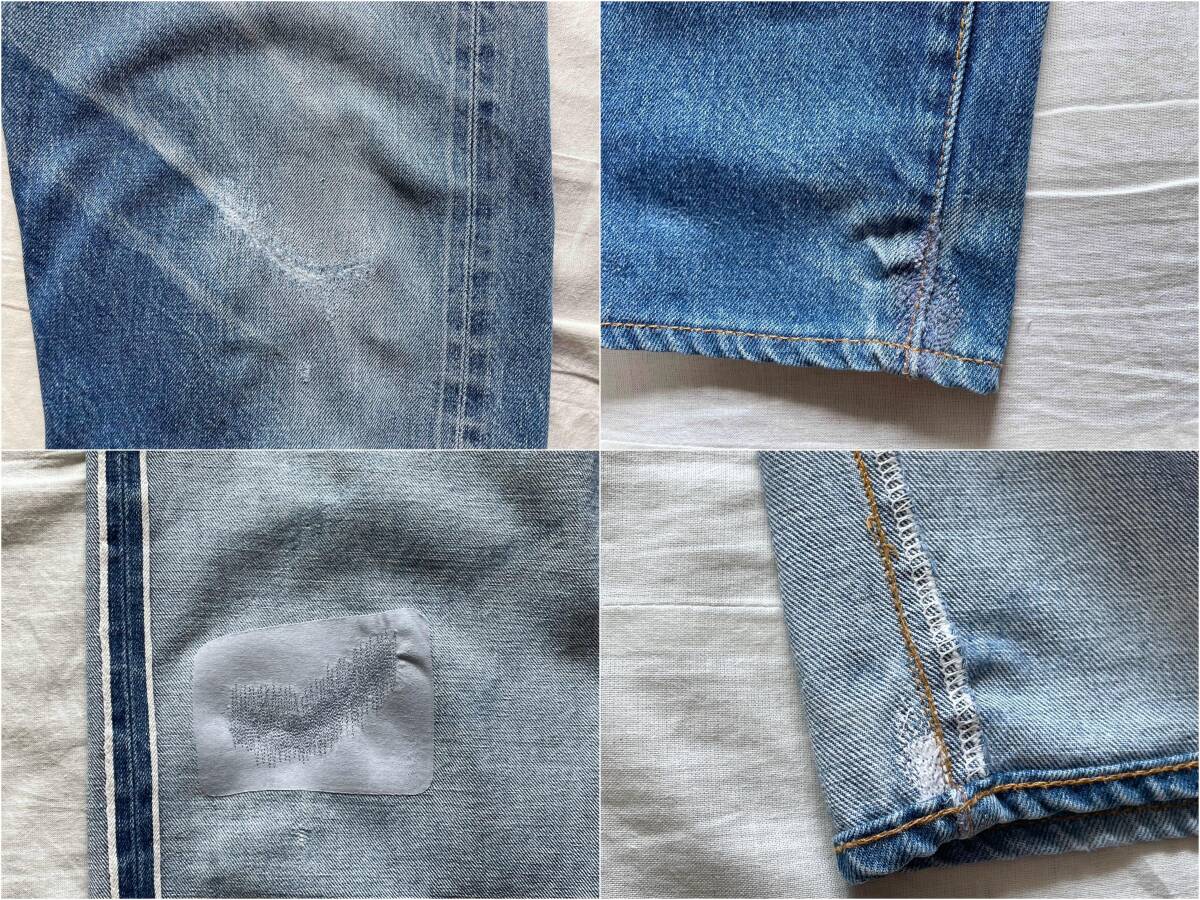 左膝と右裾に専門業社によるリペアがありますが、リジッドから実際に履き込まれ、キレイなブルーに仕上がっています。