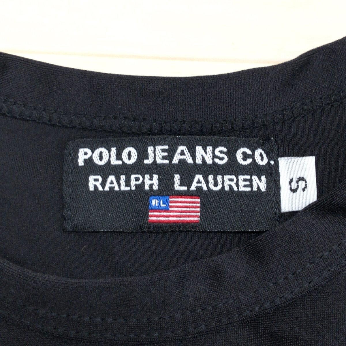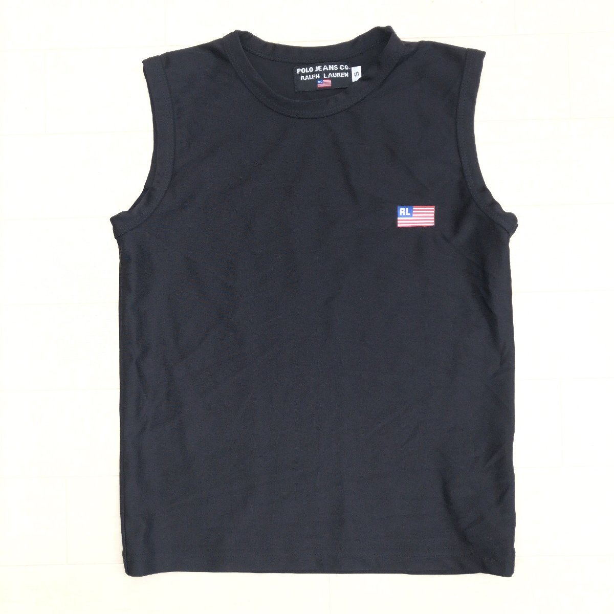 美品 00's USA製 POLO JEANS COMPANY ポロジーンズカンパニー ラルフローレン 星条旗 ストレッチ ノースリーブ Tシャツ S 黒 y2k archive