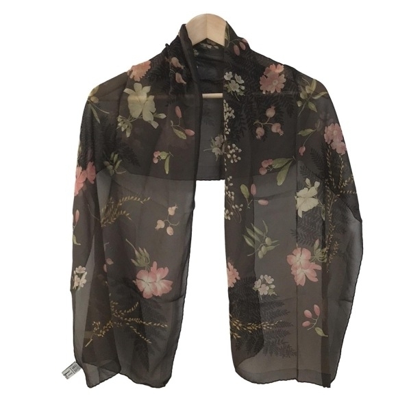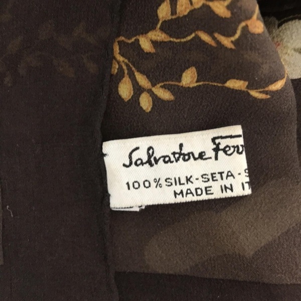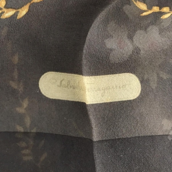 サルバトーレフェラガモ FERRAGAMO/SalvatoreFerragamo - 黒×ピンク×マルチ フラワー(花) 美品 スカーフ