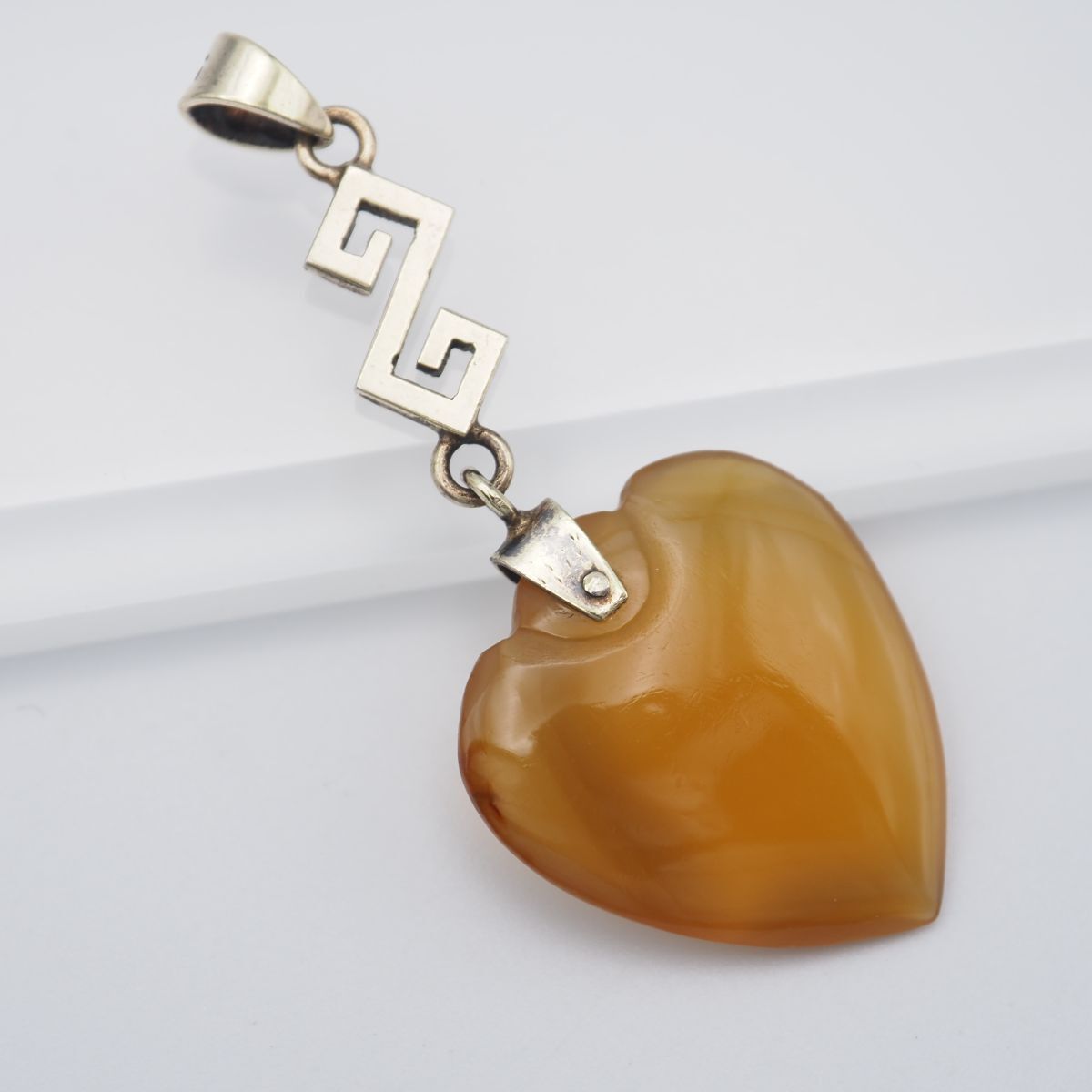 B738 天然石 S刻印 ペンダント トップ ハート ゴールド デザイン シルバー チャーム ヘッド ヴィンテージ