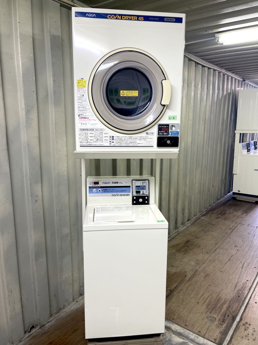★☆業務用 AQUA/アクア コインランドリー 洗濯機: MCW-C45/乾燥機:MCD-CK45専用架台付 金額設定可能