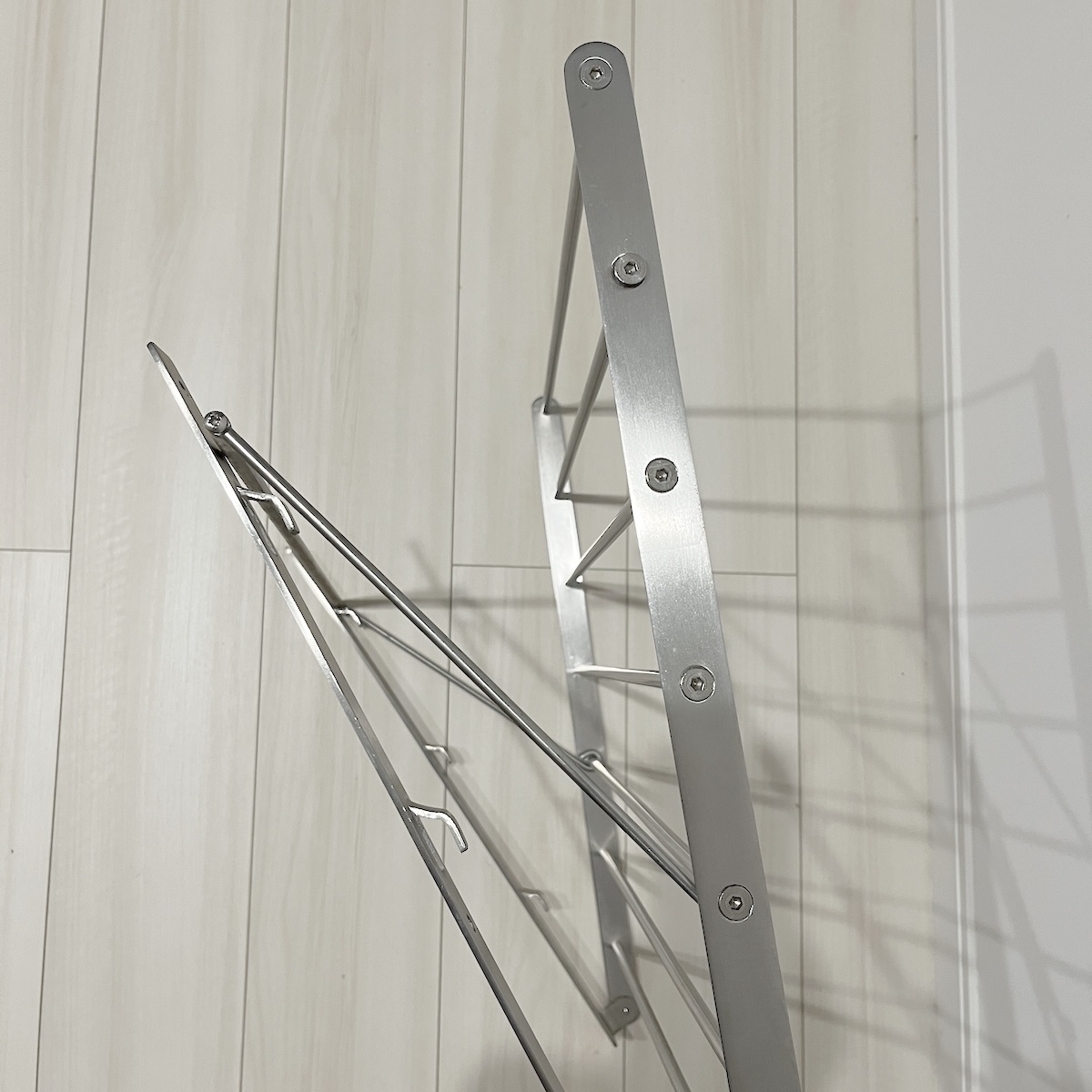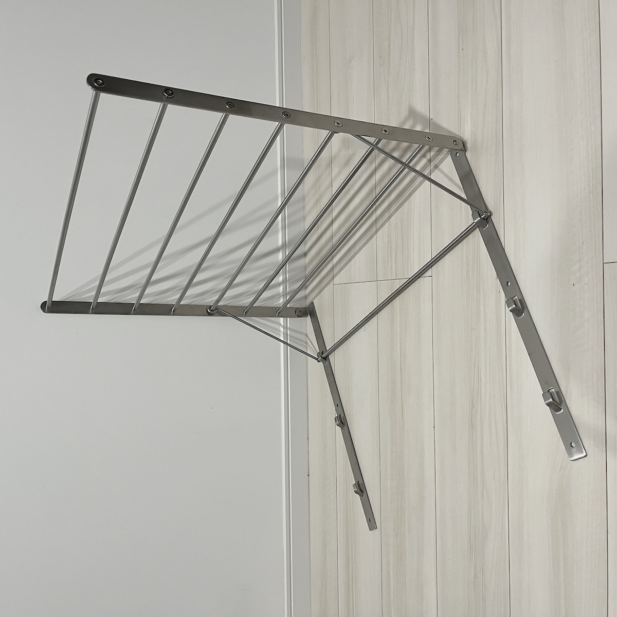 壁にビスで取り付け、未使用時は折りたたんで壁に沿うようにできる形状のものです。