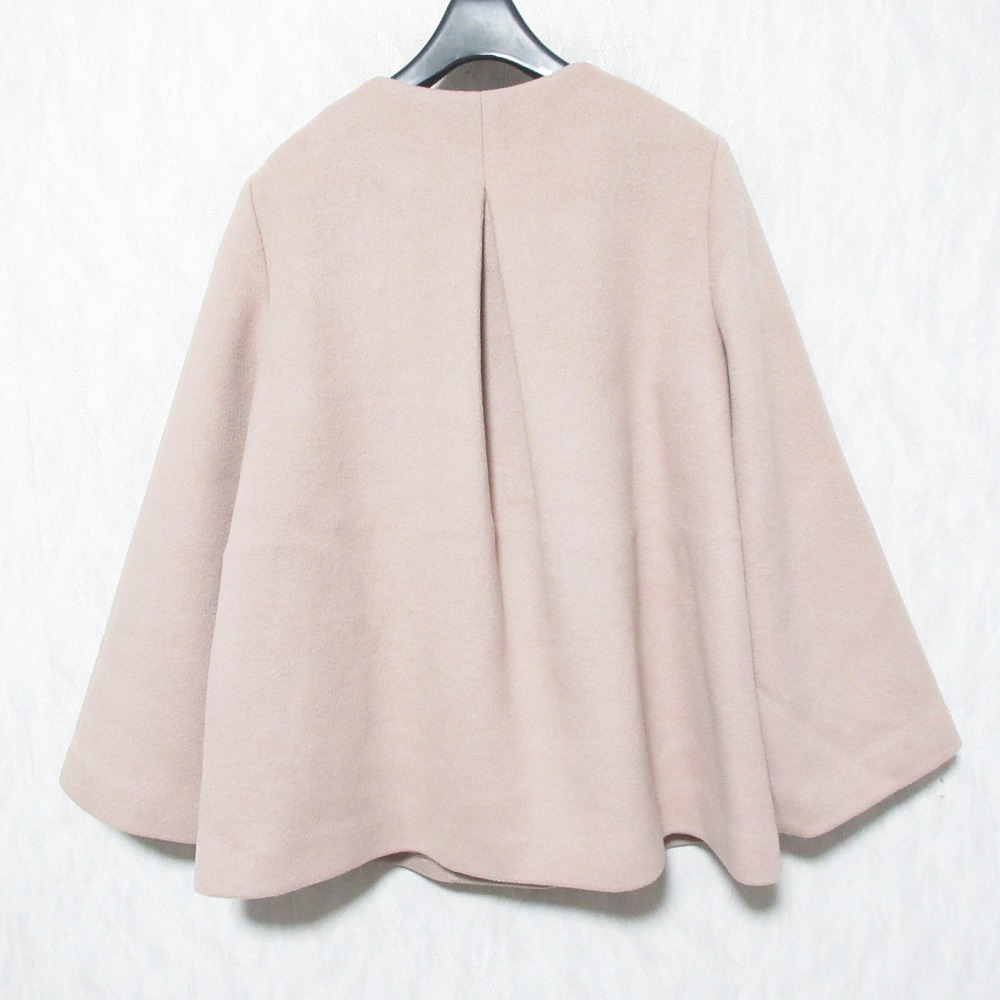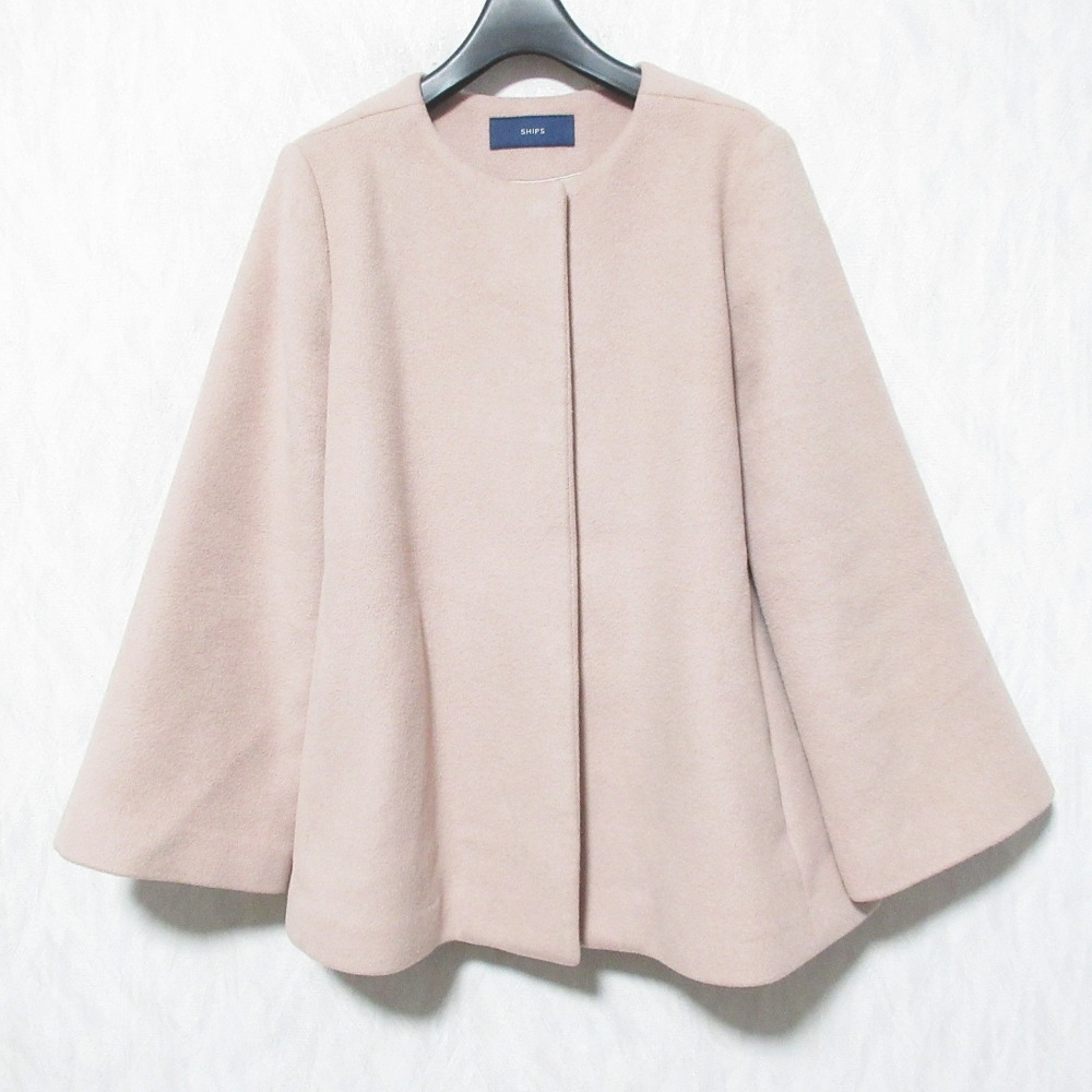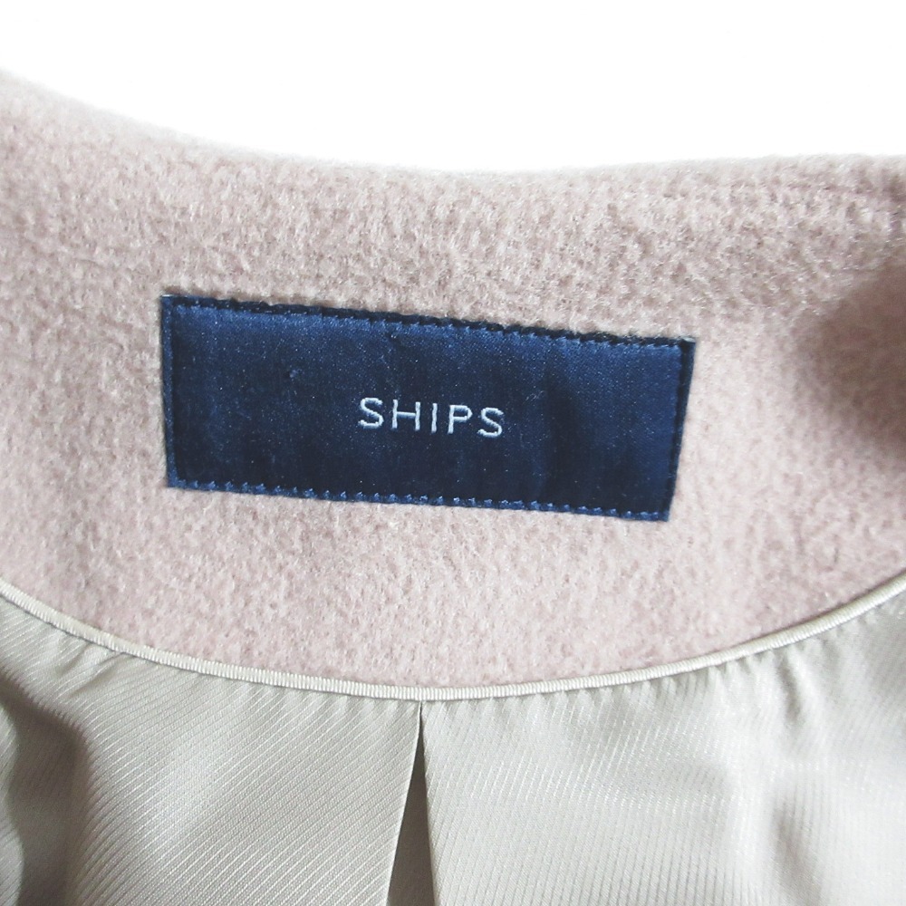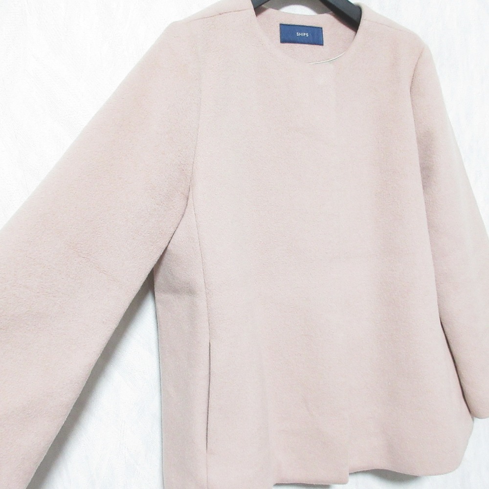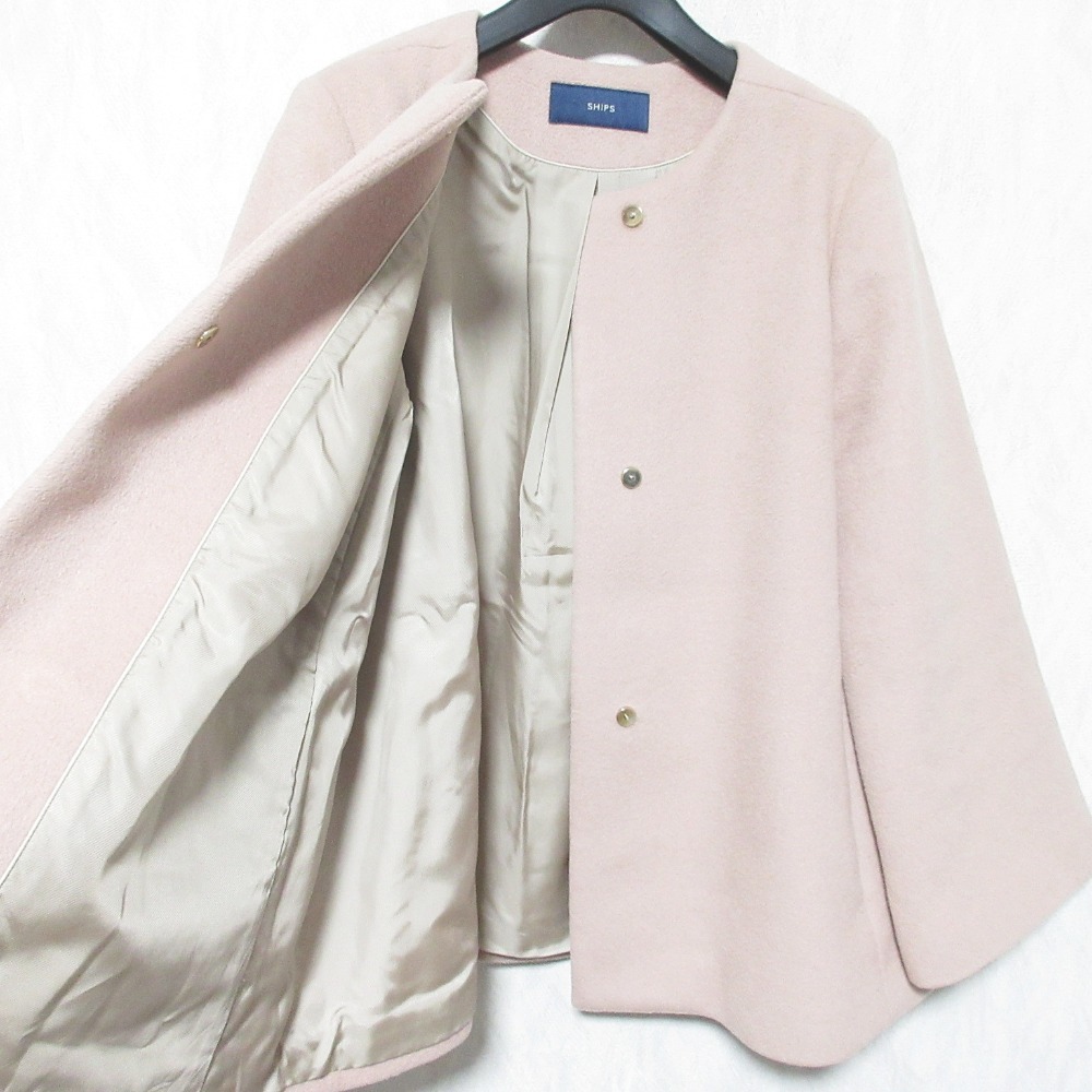 美品 SHIPS シップス ノーカラー ショートコート ジャケット 314-15-0397 40 ピンクベージュ