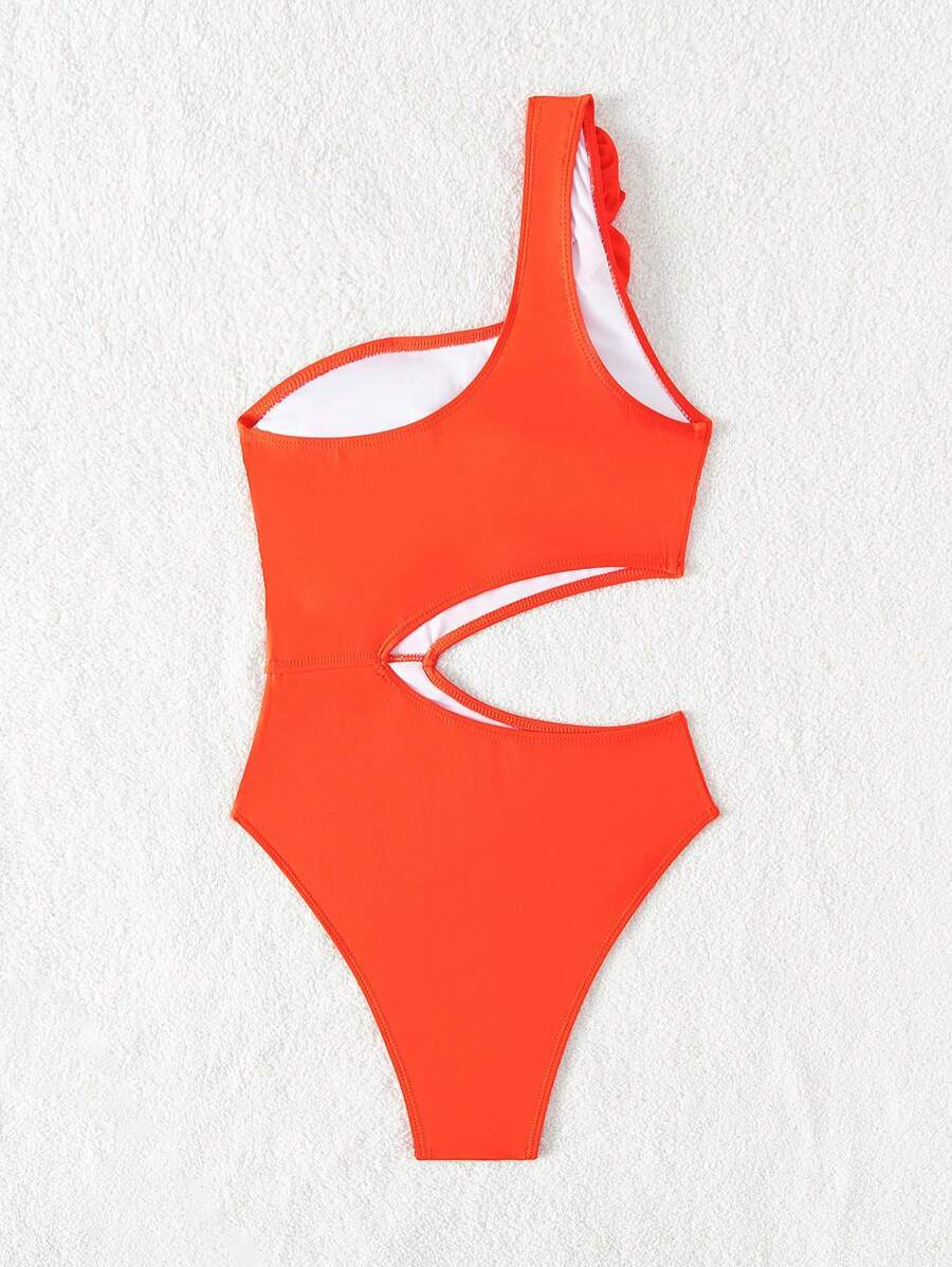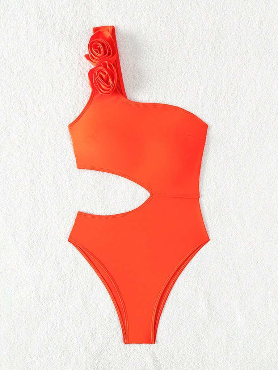 レディース 水着 ワンピース 花アップリケワンピース水着、ワンショルダー、ホロー仕様、ビーチ/プール用