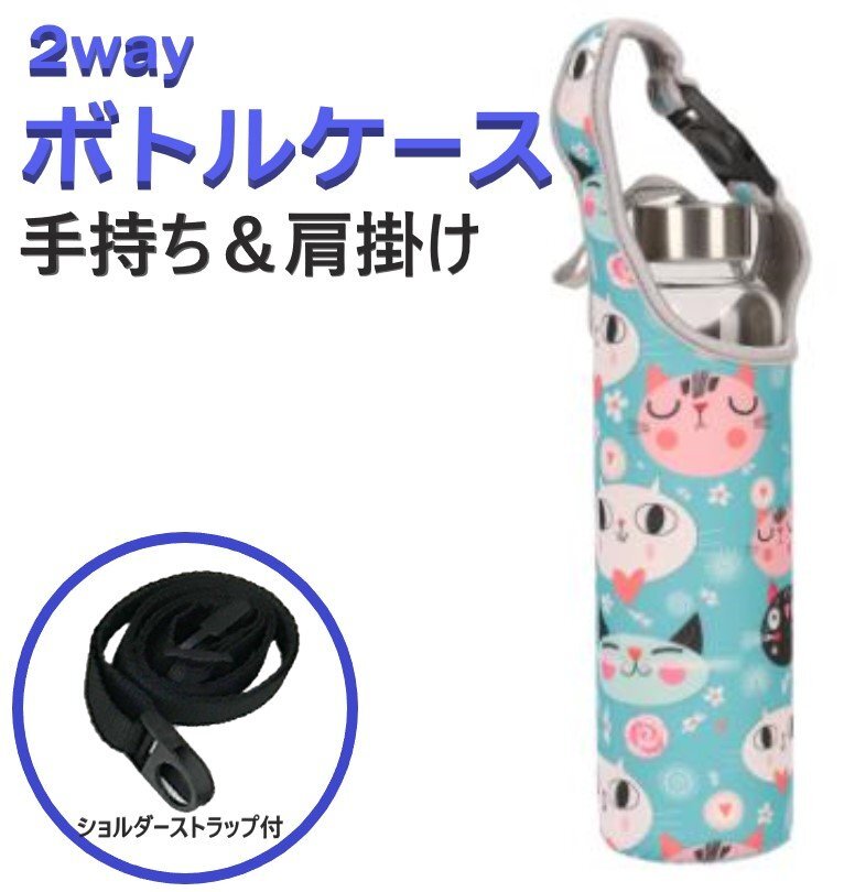 水筒カバー ボトルカバー カラーE 肩掛け ネオプレン素材 子供 500ml ペットボトル 600ml 保冷 保温 ストラップ ホルダー ショルダー