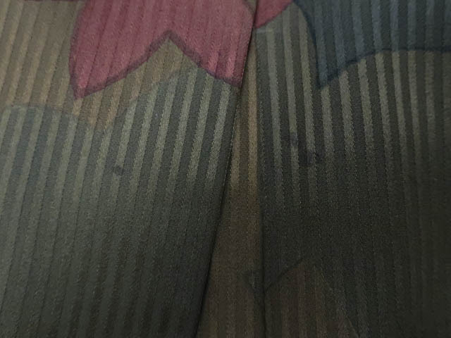 リサイクル商品のため、胴裏にしみとすれがございます。 所々しみ汚れがございますが着用可能なお品です。 地色は カーキ・茶です。 1枚目の画像が近いお色かと思われます。 素材は正絹です。 |