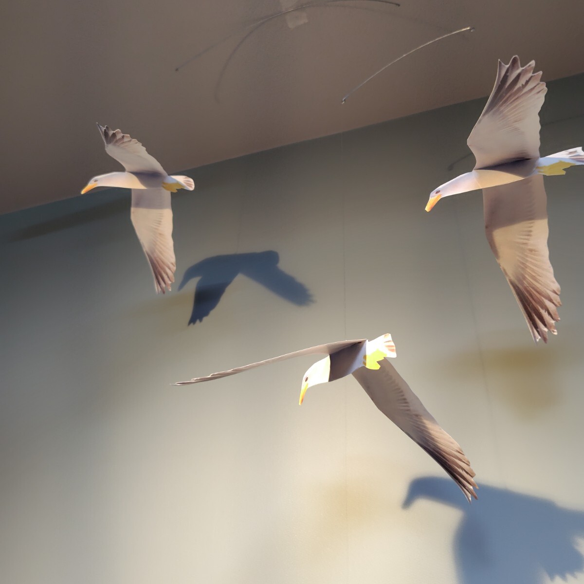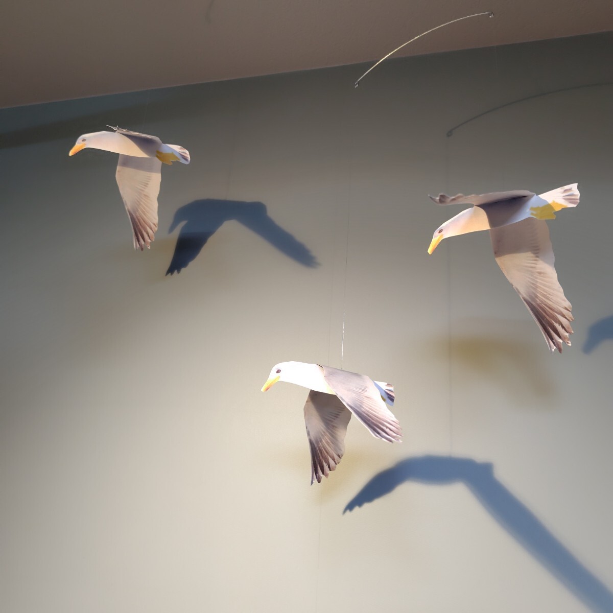 モビールとは動く彫刻。鳥を糸や針金でつるし、それらがバランスを保ちながら、わずかな風で微妙に動くようにしたものです(*^^*)