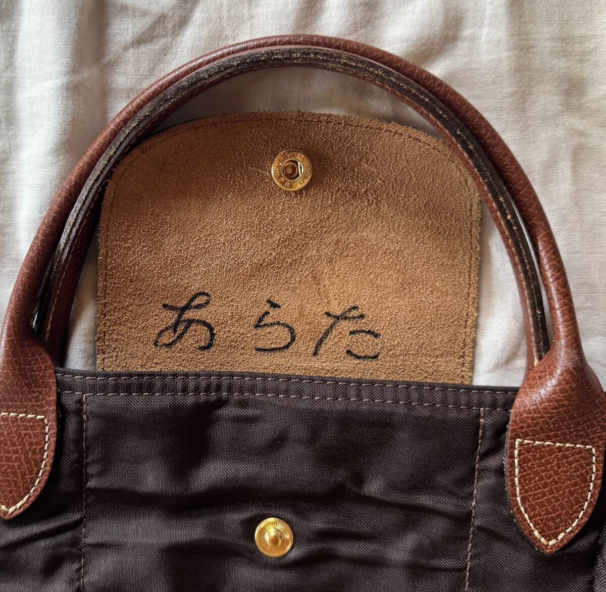 ロンシャン ハンドバッグ ブラウン 折りたたみ 名前注意 定番 角スレなし
